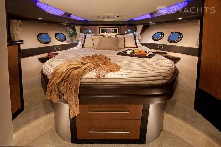 At the time of its appearance, this spectacular sport yacht has brought to market a number of innovative solutions that to this day set the tone in the industry. Housing Marquis 420 SC was created specifically for the bottom of the column Volvo Penta IPS, which is bound to affect the maneuverability and control, and complex multi-element diagram of the glazing of the cabin, the effectiveness of which can be estimated only from the inside, unlike the typical options. Another feature is automatically shifted to the stern transom that allows to enlarge the cockpit and at the same time to create micro-beach on the bathing Platfom. With the most powerful of the available engines IPS600 at 435 HP cruiser gives 35 knots.