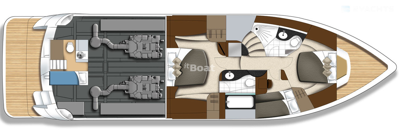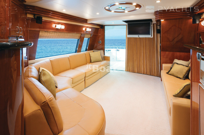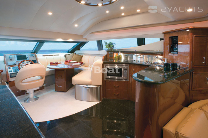 Marquis 600 — fast luxury boat, capable of speeds up to 37 knots. In the salon and the dining area easily accommodate 6-8 adults in their U-shaped sofa, grill, bar, bath, full kitchen and dining room with all the usual amenities. For each there is a bed and shower. Marquis 600 is the fruit of several groups — American shipyard Carver, Italian designers Nuvolari&Lenard and testers Donald L. Blount and Associates, responsible for the improvement of structural and performance. In addition, specialists Ward's Marine Electric has developed and installed on the Marquis 600 complex electrical system. The result is a boat with impressive features and a spectacular design. She has a beam of 5 meters, so the salon, and 3 cabins and a spacious deck. Decorated in the same style wood black cherry and exotic African Sapele pomele, sofas upholstered in leather, and contertop and floor coverings made of granite.