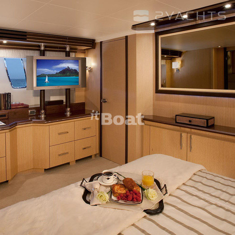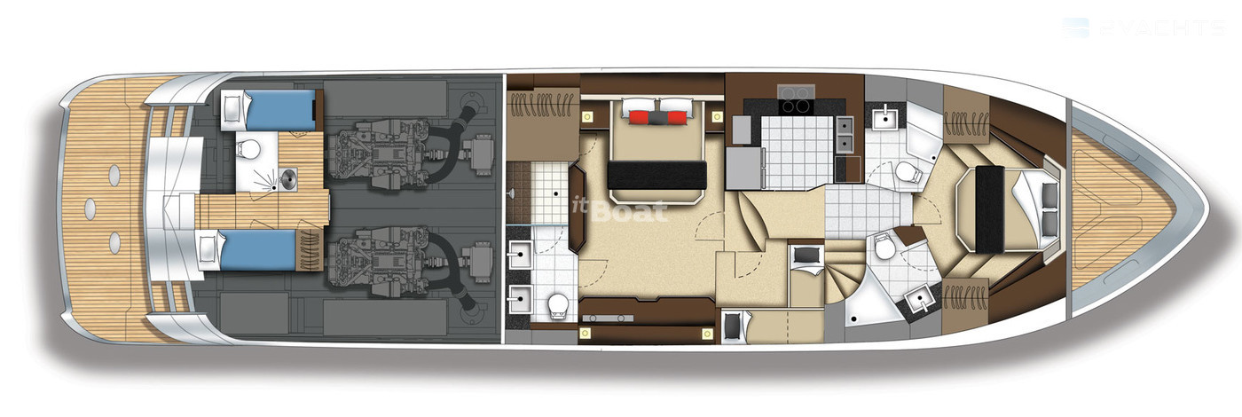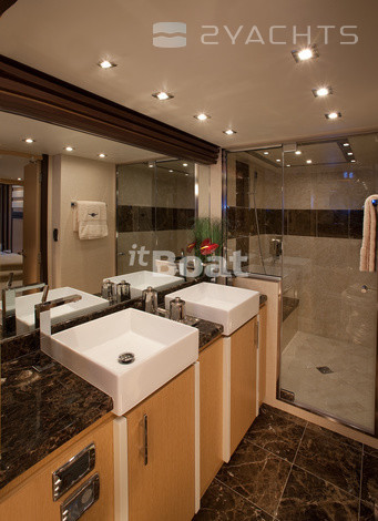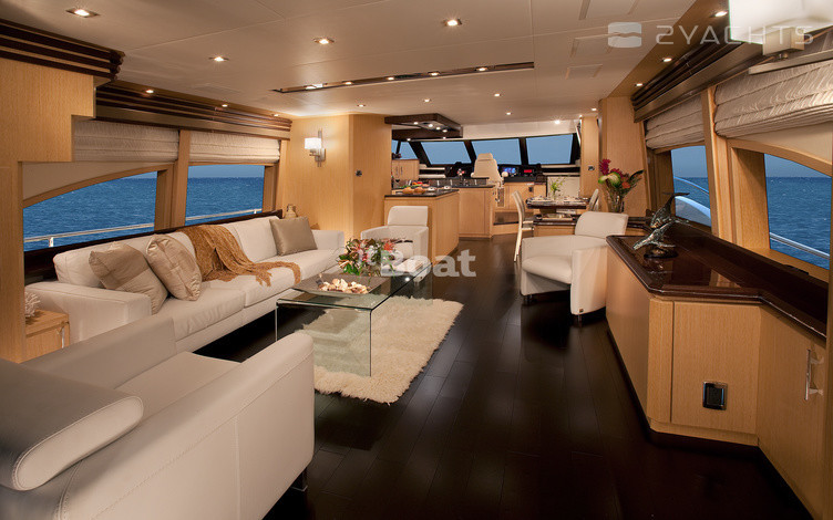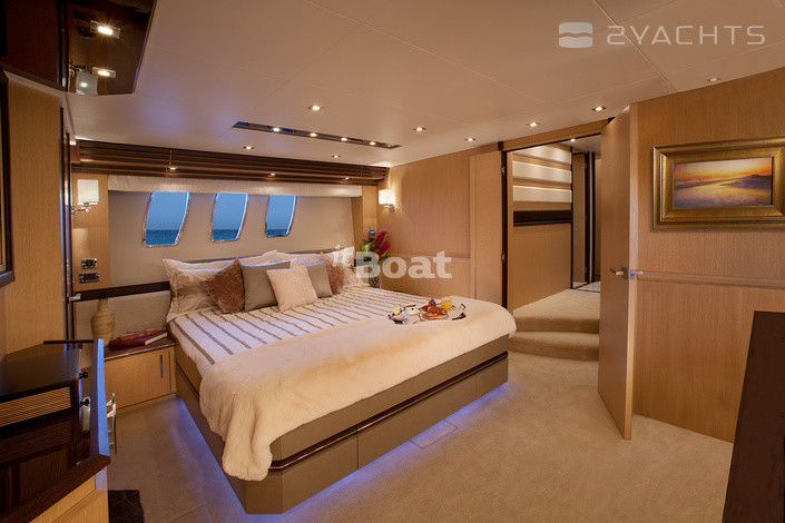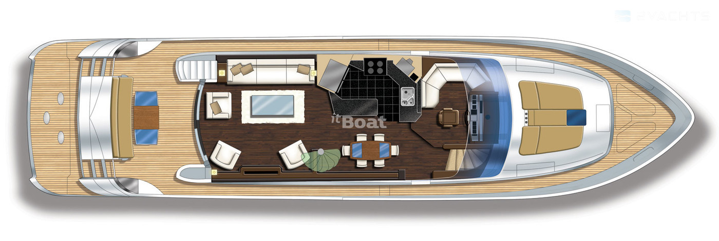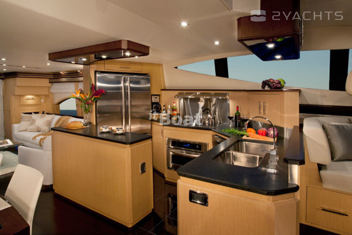 Marquis 720 Fly Bridge motor yacht with flybridge from the American shipyard Carver, the creation Valentina Zannier partner and lead designer of Italians Nuvolari-Lenard. She did not look anything like the previous models of the Marquis. It is not only in the materials — finish wood, Brazilian cherry, teak and oak, granite and marble for the Marquis is not news. Otherwise, the developers approached the problem of layout. On the 22-metre package fit 10 people (8 guests, 2 crew) with everything you need. In addition, Marquis 720 Fly Bridge has a custom design — its fiberglass body was built for a special "marine" technologies. The hull and deck area act as a single structural element "box-beamed". The case itself is made from a hollow inside the optical fiber sheet filled with a highly concentrated foam below the waterline and fibers from the core of balsa wood. Marquis 720 Fly Bridge speeds of 30 knots and is designed for a long voyage. When the fuel tank in 4921 l it you can go 700 miles without refueling.