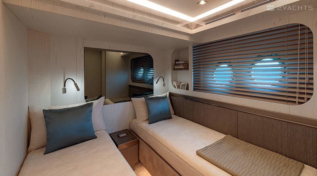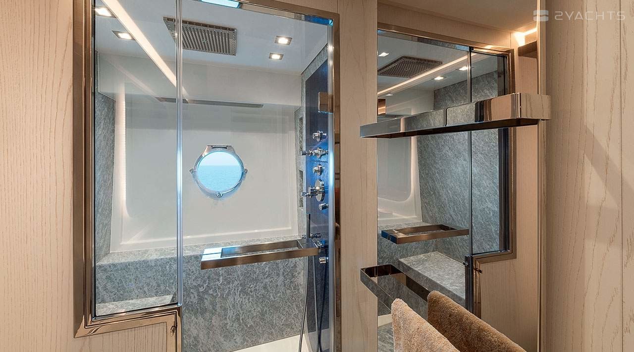 Two MAN diesel engines with a capacity of 1200 hp are installed on the yacht, which allows you to develop a cruising speed of up to 26 knots, and the maximum - up to 31.