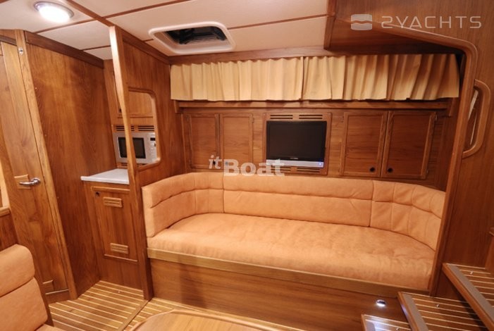 The previous model Nauticat 44 is a well known fact that yachts of this type have been to almost all waters of the world — from the tropics to high Arctic latitudes. When it came time to substitute in the production of this excellent boat — all 35 years is a decent period to create a new model of Nauticat 441 proceeded carefully, so as not to screw up. Because, as you know, the best is the enemy of the good. New boat extended KVL, changed the area and the position of the rudder, improved the layout of the deck and appearance of the cabin. Closed cockpit added square, and its protection has been strengthened. Today Nauticat 441 is the largest model of the shipyard with the architecture of the classical motorsailer.