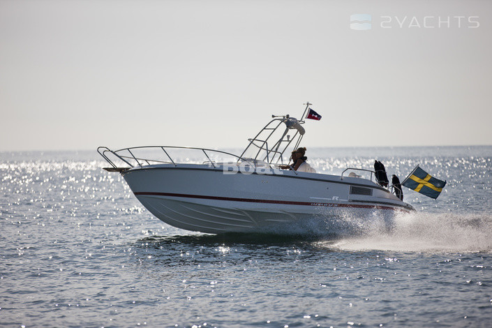 Seaworthy and operating characteristics Nimbus 230 R was so successful, that in this case the company even built a utilitarian version of the Nimbus 21 Nova outboard motor. 230 and R is the sea limousine for the extreme. Everything there is covered with teak, where you do not reach out your hand to grasp a helpful, powerful railing. Double cabin allows you to escape from bad weather or to hide the two from prying eyes, and on its roof formed the same bench with teak floors, where on the course you can substitute the elastic face of the sea breeze. Layout Walkaround with side aisles around the cabins allows you to play catch-up barefoot on a warm tick. Undoubtedly, this is the boat for romantic walks. And walks "with the wind", as robust housing with two lateral sponsons even with the diesel engine Volvo Penta D3-220 carries its passengers at speeds in excess of 40 knots. But it is possible to order the boat with a gasoline engine, Volvo Penta V8 with a capacity of 330 forces, and then the delight of flying over the waves is not the limit.