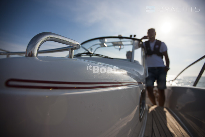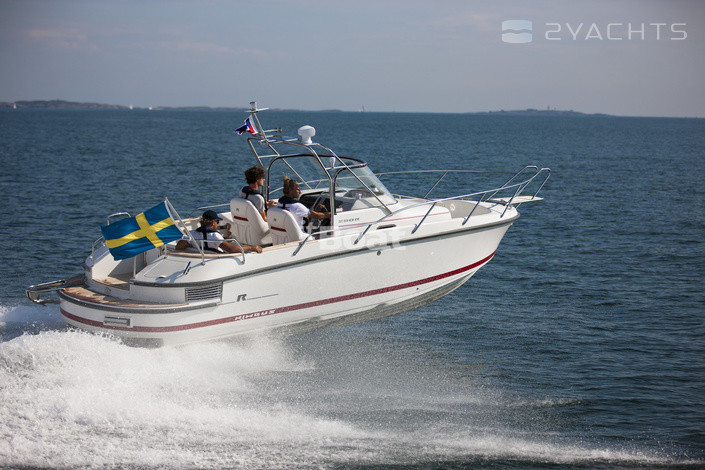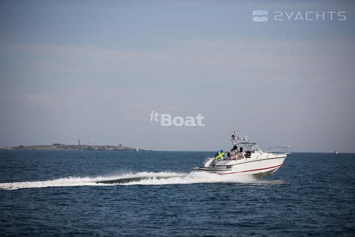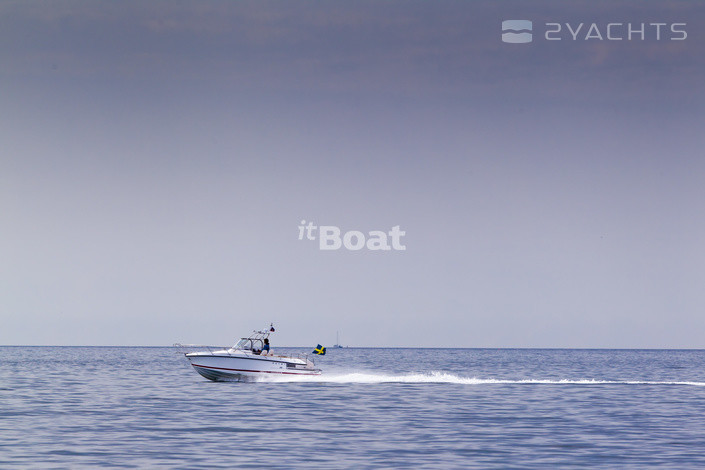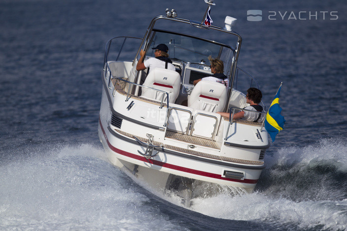 If to collect all requirements for an ideal boat for trips to swimming with a group of friends or alone with a girl, and bring them in durable fiberglass, chrome stainless steel and the warmth of the teak, you get a Nimbus 250 R. helm station is equipped with two offshore seats and deploying them back to the couch and setting it on the deck table, you can get a great place for a picnic. High coamings and reliable rails guarantee the absolute safety of the passengers on the go. After the engine Volvo Penta D4-300 is able to accelerate the boat up to 43 knots, and thanks to the two lateral sponsons its handling is fantastic, although the roll in corners is also not weak. But this is not important in the Nimbus 250 R. in addition to convenient cockpit with large possibilities of transformation, the designers managed by 7.39 metres of length to embed into the boat is a full cabin with galley with sink and stove, and a refrigerator. More! On the boat there is even a stand-alone latrine with washbasin and shower. So feel free to go on swimming to the distant bays and Islands for a few days, good to live on Board in comfort.