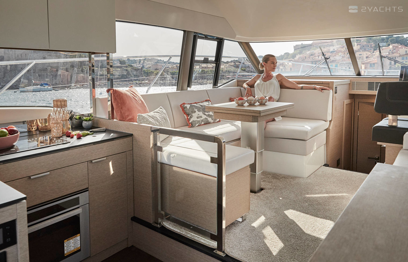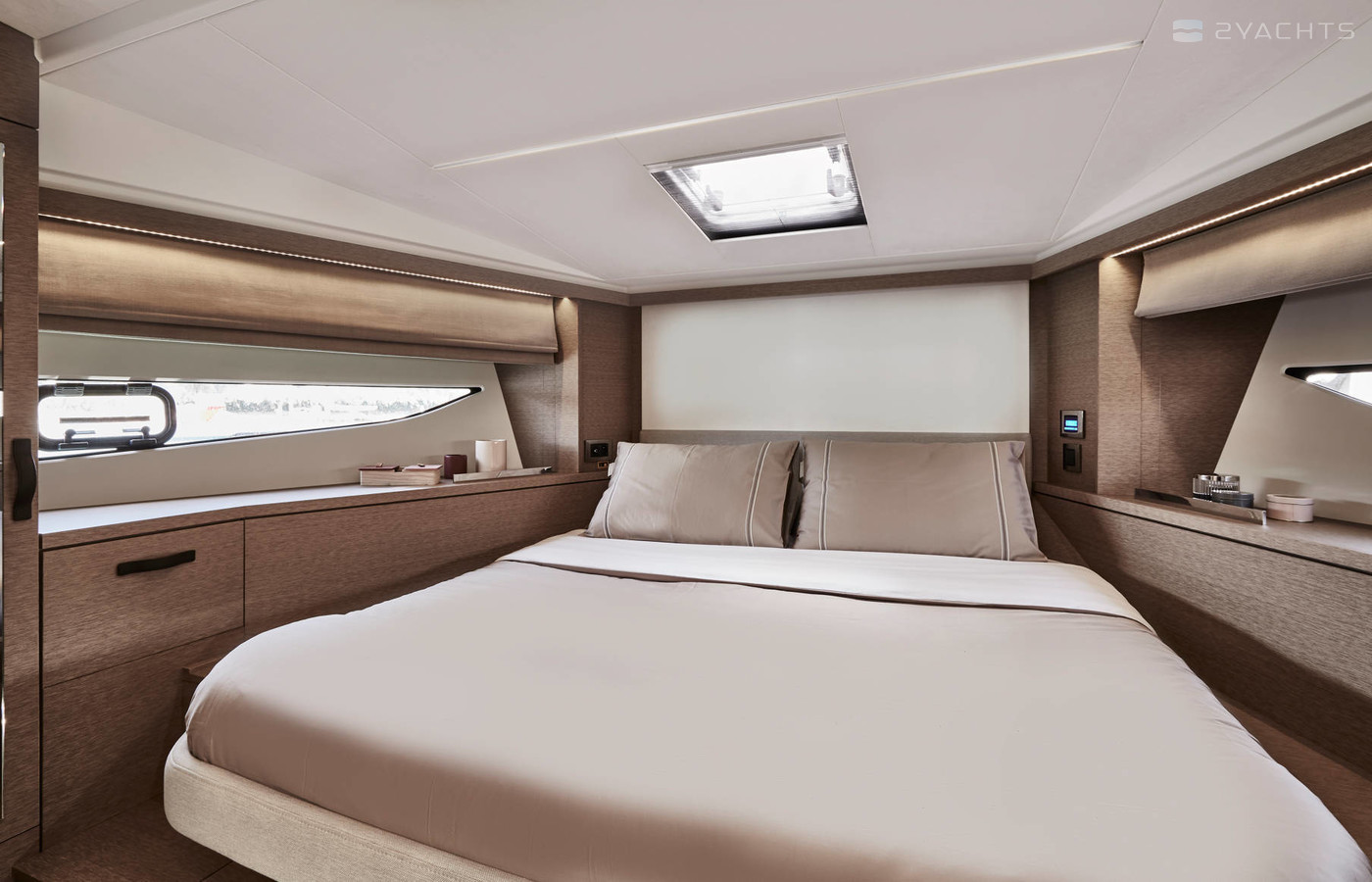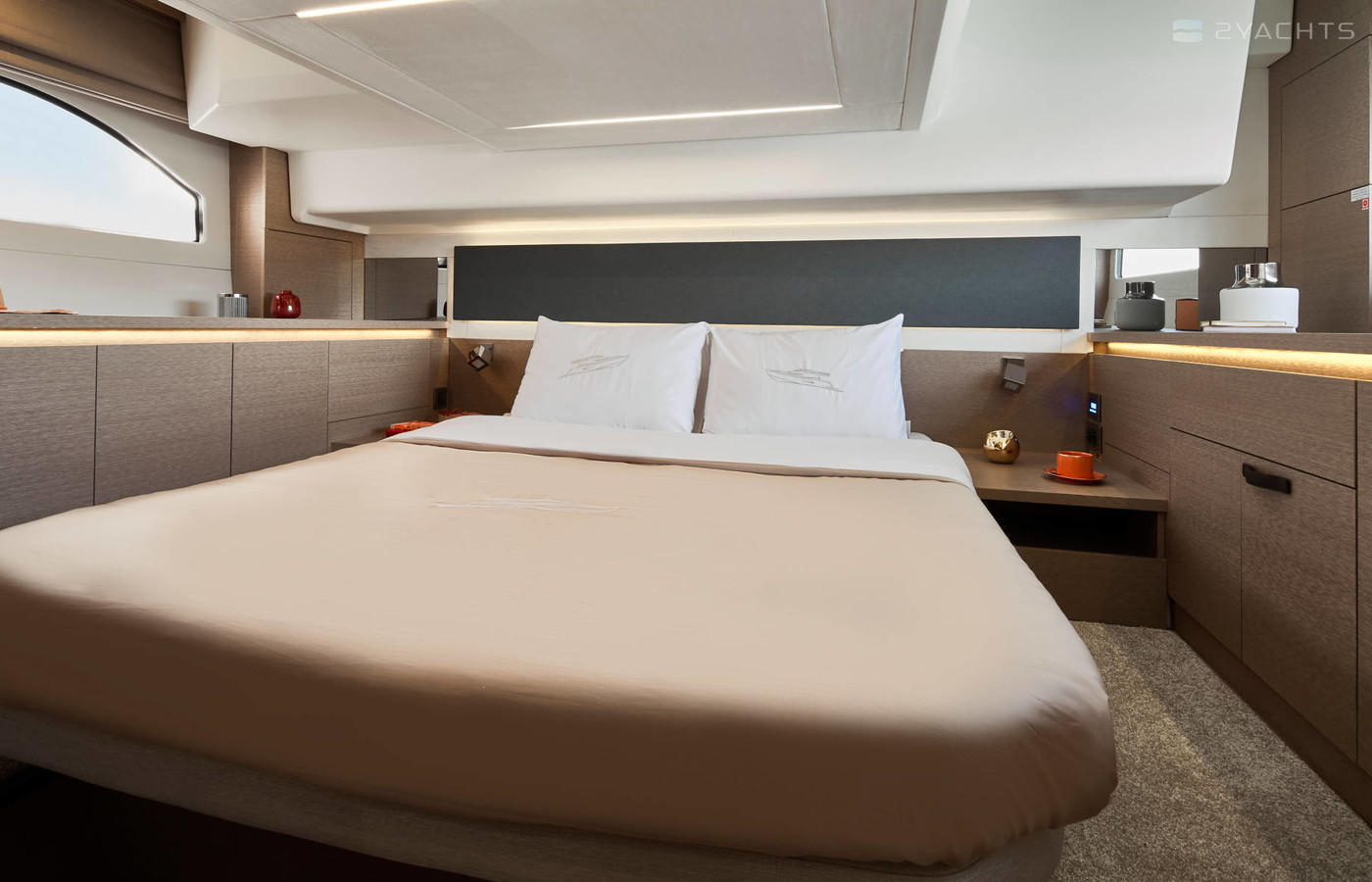 Standard equipment PRESTIGE 420 engines Cummins 6.7 - 380 CV / HP - V-drive or Cummins 6.7 - 425 CV / HP - V-drive allows it to develop a cruising speed of 22 knots. The maximum speed is 31 knots. The fuel supply in tanks is 1100 liters, and fresh water is 400 liters. The vessel is intended for sea voyages at a distance from the coastline of not more than 200 miles.