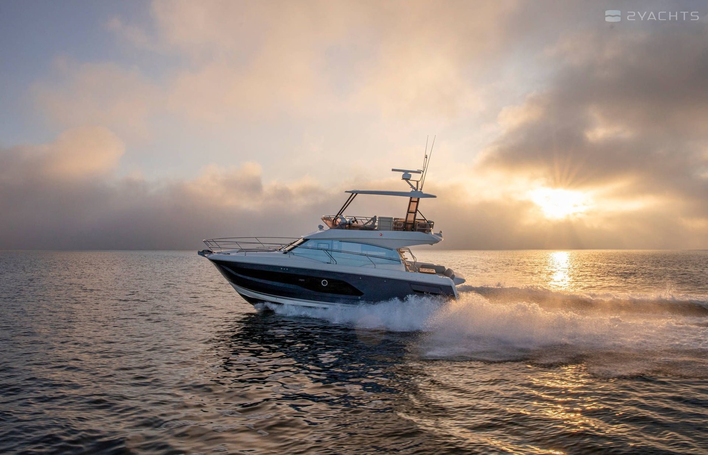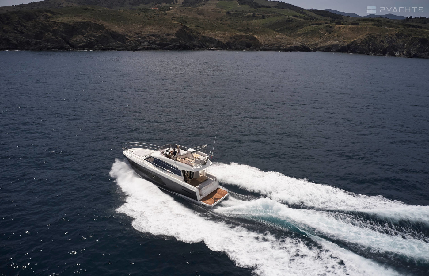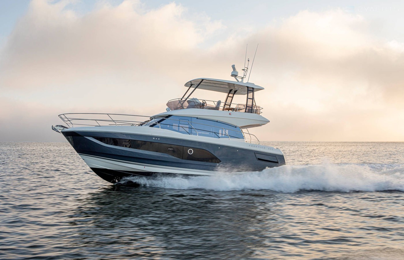 PRESTIGE 420 has been in production since 2015; a planing yacht with a flybridge has a fiberglass hull length of 13 meters. It is manufactured using vacuum infusion technology, which reduced the weight of the vessel and added maneuverability. The exterior and interior, as well as the decoration of the yacht, were dealt with by GARRONI Design. The manufacturer provides variations of interior solutions using precious wood.