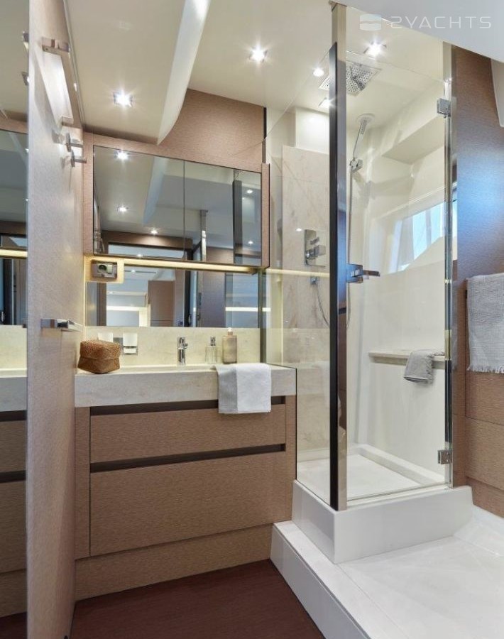 Spacious owner’s cabin with a separate entrance and a large bathroom, VIP cabin in the bow of the yacht with a separate bathroom and bath for complete comfort on board. In the guest cabin, if desired, you can combine and transform single beds into one.