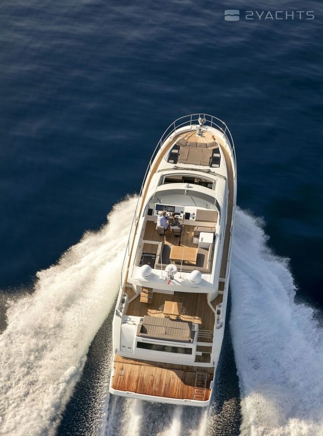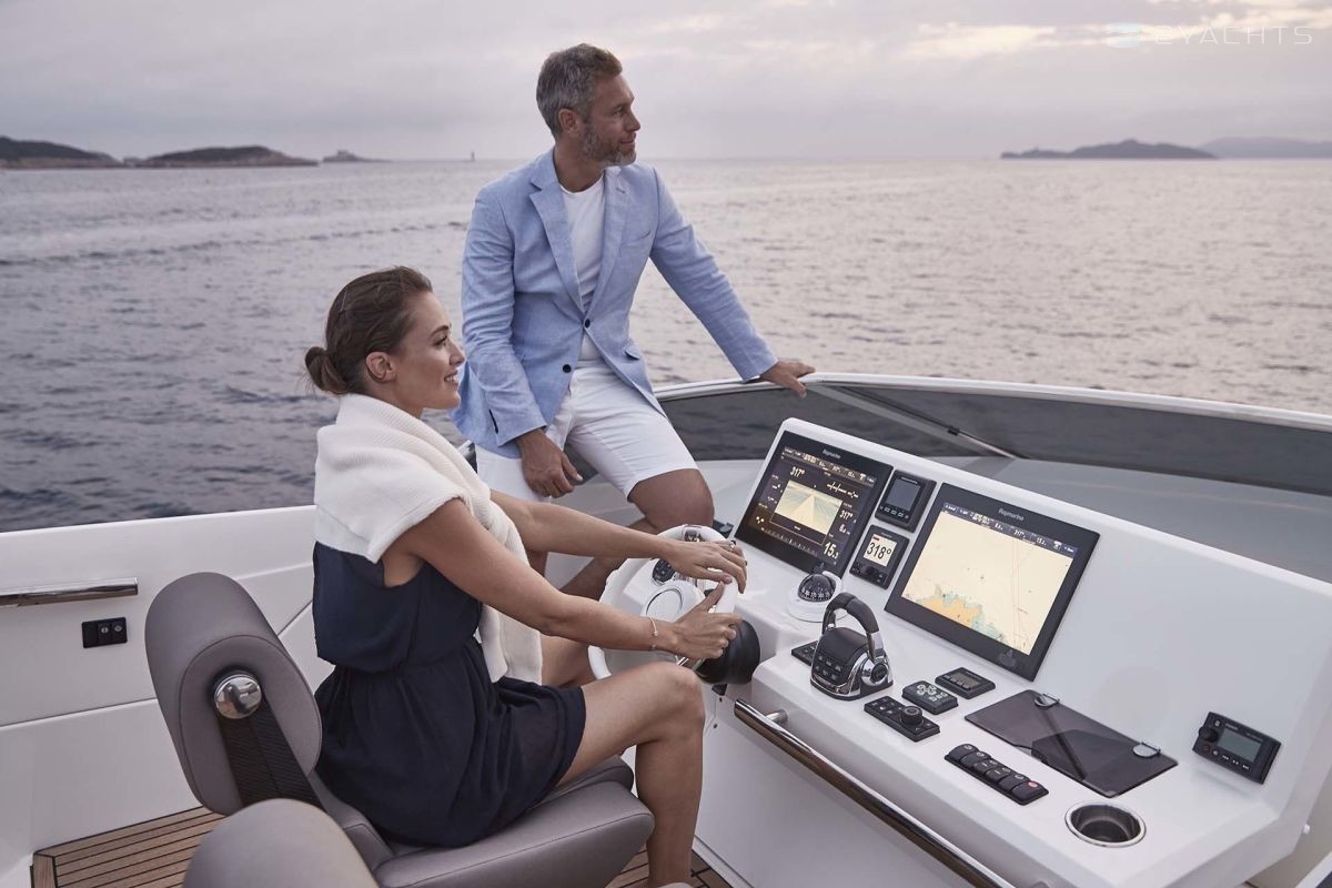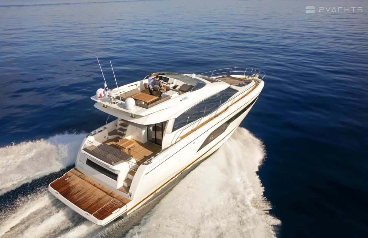 The main distinguishing features of the yacht PRESTIGE 630S are its sporty appearance, impeccable technical specifications and spacious living areas. The yachts of the French shipyard PRESTIGE are distinguished by luxury and style, due to the fact that the famous Garroni Design studio worked on the creation. The model was first presented at the Cannes Yacht Show in 2017.