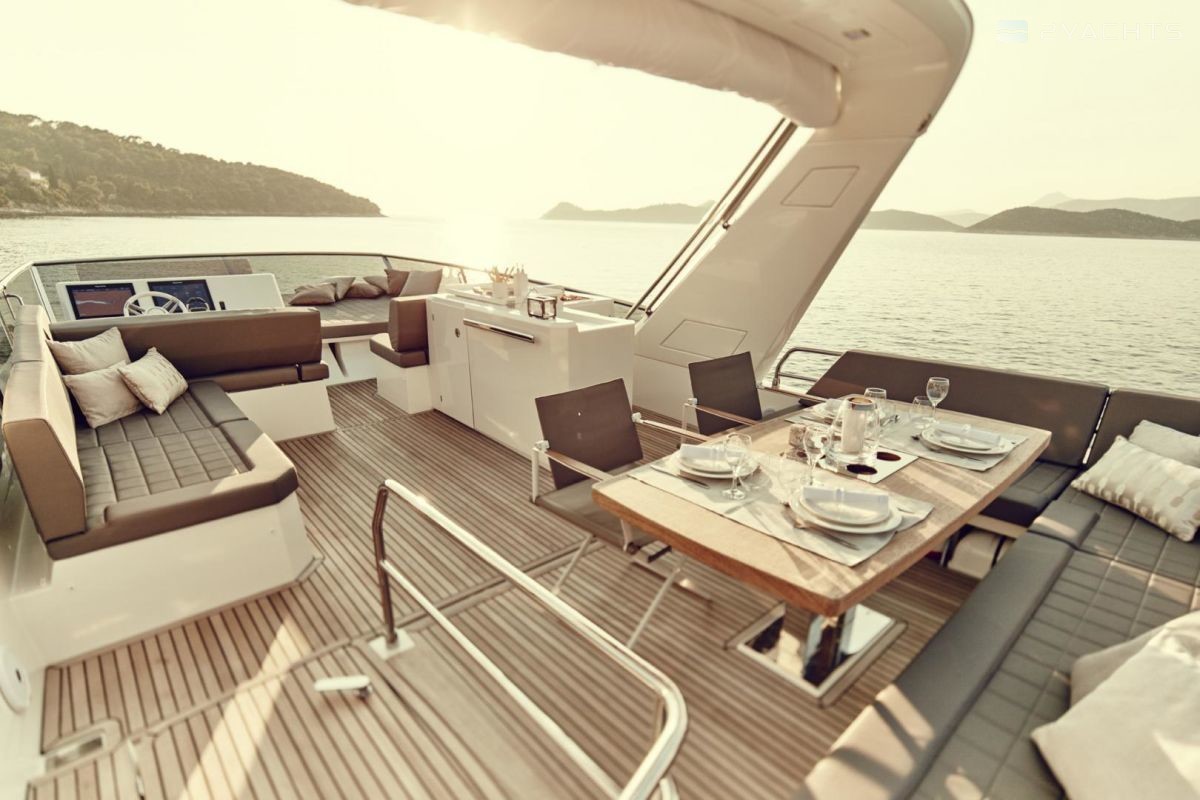 In 2020, the PRESTIGE 680 flybridge yacht, in its updated version, received a number of improvements in functionality and design. The success of the previous version is confirmed by the award “Motor Boat of the Year 2016”. The joint project of the Garroni Design and J&J Design design studios received all the best from the older PRESTIGE 750.