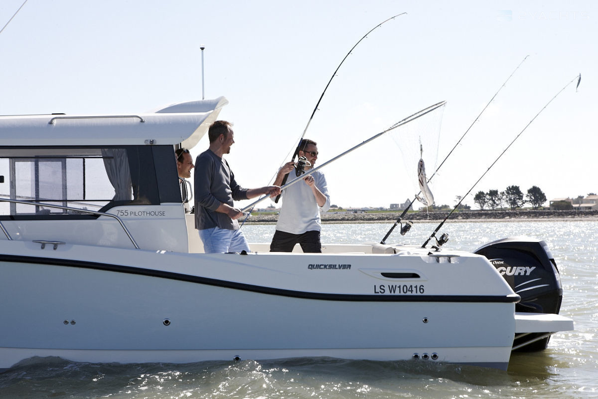 Quicksilver 755 Pilothouse - C class seaworthy boat, manufactured since 2016. The boat is a continuation of the family of high-speed boats for recreation and fishing, the use of fiberglass construction and vacuum molding technology in the design has reduced the weight of the vessel and improved handling.