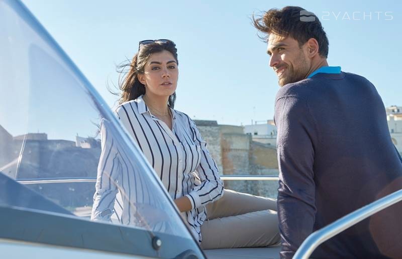This model can be equipped with Mercury power plants with a capacity of 115 to 150 hp, a ship length of 5.94 meters and a width of 2.4 meters. The boat is made of fiberglass and has received CE (C) certification for access to the sea, but no further than 200 miles from the coastline. The capacity of the fuel tank is 160 liters, and the capacity for storing fresh water is 45 liters.
