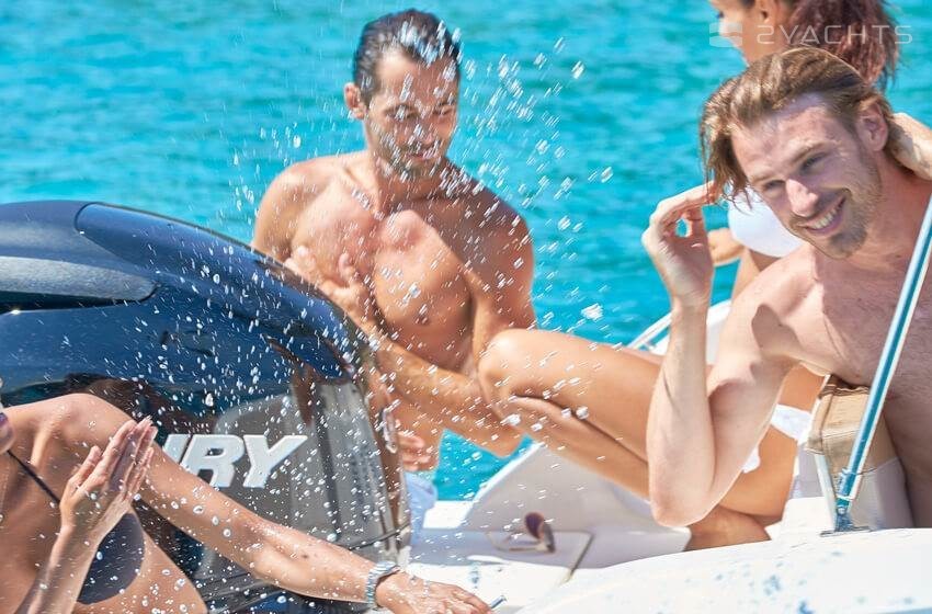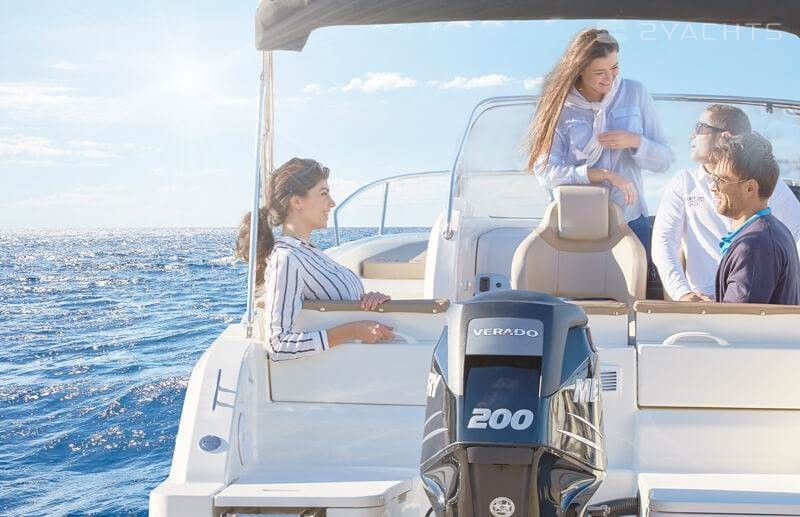 Outboard motor from Mercury, with power from 150 to 225 hp, is the responsibility of the boat's driving performance, at the choice of the owner. The water tank is designed for 50 liters, and the fuel tank for 140 liters of fuel.
