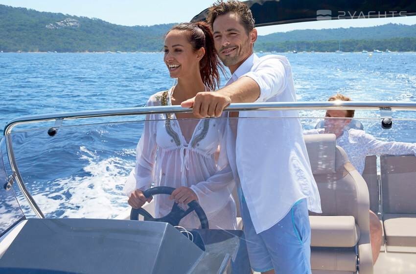 The outboard boat Quicksilver Activ 675 Sundeck made its debut at the 2011 International Boat Show in Dusseldorf, where it was voted the best boat of the year. The design of the ship was carried out by the shipyard’s design bureau together with the master of design, Karsten Astheimer, who this time designed the ship in a Mediterranean style. The style can be traced in the light colors of the design of the boat and the guard rail with a slight slope. The hull is made of hardened fiberglass, which led to weight loss and, as a result, better handling. The customer has several interior layouts and colors to choose from.