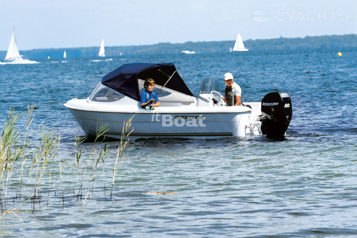 For those looking for a mobile, but quite a large and roomy boat, open Quicksilver 500 Fish can be approached optimally. For fishing, a friendly ride or vacation with the kids this boat has everything you need and more. Quicksilver 500 Fish has a spacious cockpit, which allows it to take on Board up to 6 people. As standard the boat comes with steering console, windshield, swim ladder, cleats, stainless steel, lockers for storage and an anchor. Optionally, the boat can be equipped with a special drawer for ice that may appeal to discerning anglers. Glass front and open in the nose of the cockpit awning will cover the passengers of the boat against the wind. Among the possible engines for boats, the shipyard offers options with a capacity up to 60 HP With this motor Quicksilver 500 Fish exhibits decent speed. Boat weight is 415 kg, with the engine just over 500, which is rather easy transportation of the boat. The presence of a trailer also allows to solve the problem with the storage of boats, many owners prefer this method instead of Parking on water at pier.