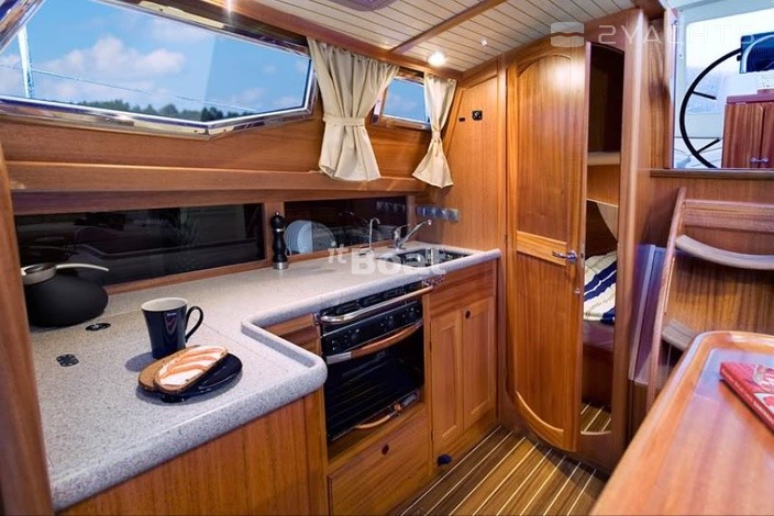 Regina 35 — the smallest model in the product range of the shipyard. Despite this, she is a typical representative of the brand: it's quite expensive, very well made yacht with a raised saloon, opening-round view of Diners inside people. Small an annual release of boats of the shipyard Regina allows you to pay great attention to the quality of the boats. Careful adjustment of all units and details is a characteristic of this brand. Another important detail — no savings. The 12 mm teak on deck, furniture from solid wood, not veneered, epoxy coating — all included in the basic equipment of the yacht Regina.
