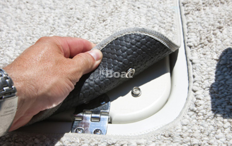 In the bow of the deck there is a recreation area with deck chairs, chairs on the sides, on which, for the safety of passengers, soft rollers are provided to protect them from shock during operation. Immediately after the recreation area there is a caddy cabin with front glazing, a captain’s bridge and an additional passenger seat, installed on the port side. Between this armchair and the captain's armchair there is a compartment in the floor for storing equipment and personal belongings, and the same compartments and lockers are located in the sunbeds on the bow and in the couch on the cockpit. Immediately behind the cockpit there is a sunbed, which is the lid of the engine compartment, followed by a bathing platform with a folding ladder.