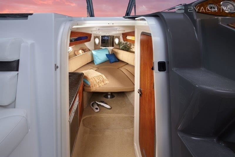 The manufacturer recommends to equip the Rinker 290 EX, which can be used as a towing vehicle for wakeboarding and wakesurfing, with a wide selection of engines from Mercury or Volvo with power from 350 to 380 hp.