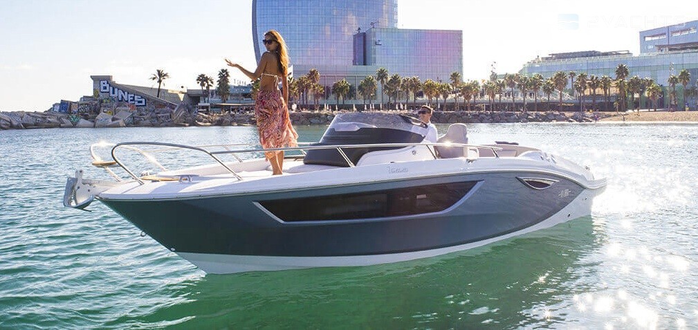 Sessa Key Largo 27 IB – an open fiberglass single-deck boat with a double cabin in the bow. The gliding ship, whose concept and exterior was handled by Christian Grande, has been in production since 2015. The customer has the opportunity to choose an option for painting the hull and install options, including a silver dashboard, separate sports-style seats for the captain and his assistant.