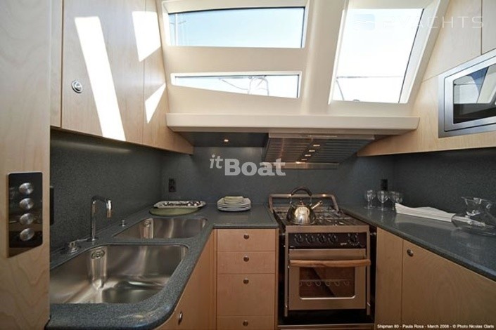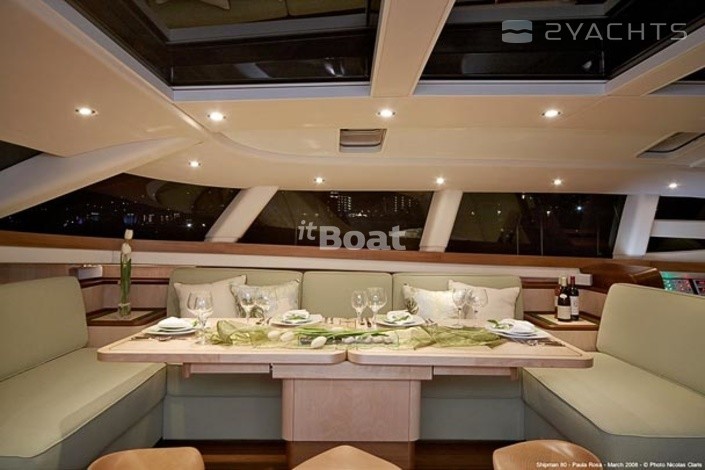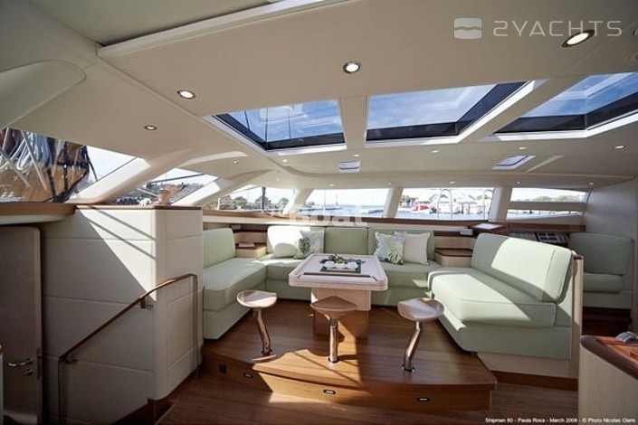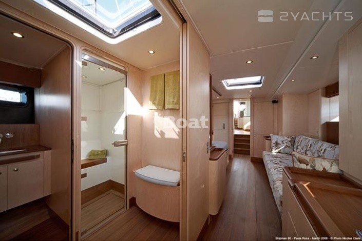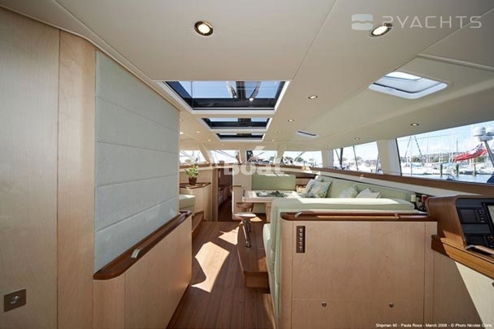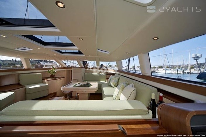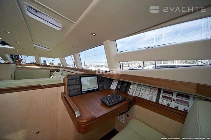 Shipman 80 was already the fourth model of the shipyard, with excellent hydrodynamics of the hull, resulting from the long basin tests. Unlike earlier models, the yacht got a lifting keel that allows her to enter shallow bays and harbours. Another important innovation was the two rudder, notably improved control of the boat at high speed and on rolls. Like previous models Shipman, 80 may be easily managed by the owner, requiring the lowest staffing team for maintenance of the vessel.