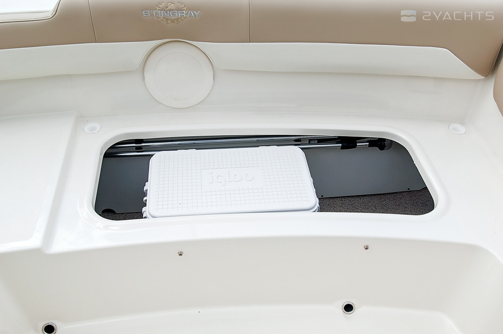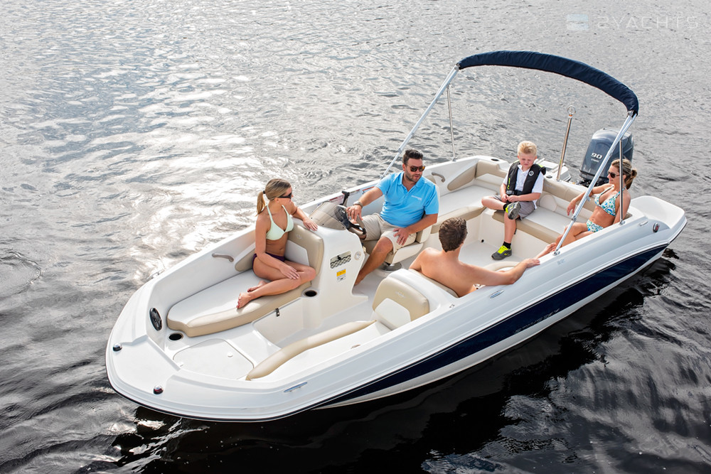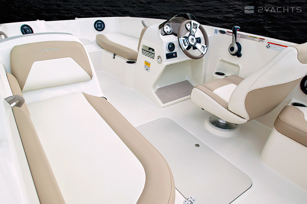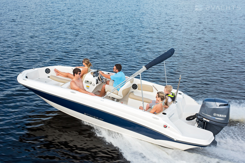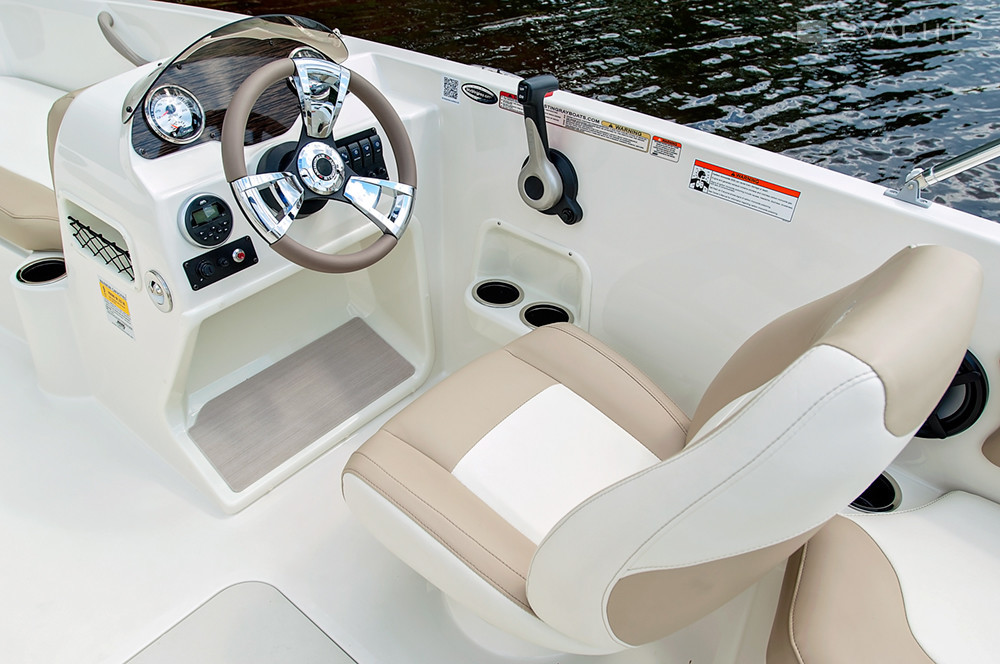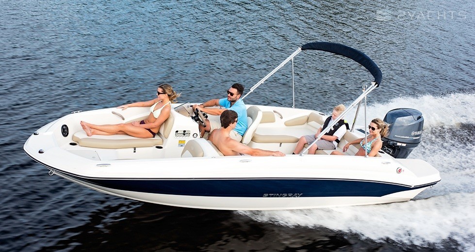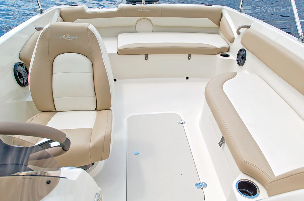 The sports bowrider Stingray 182SC (ОВ) has been produced by the shipyard since 2016. This model is part of the Deck Boats range with a distinctive mainstream design. The planing body made of fiberglass, at the request of the customer, can be supplemented with decorative elements made of stainless steel, a colored stripe in a contrasting color.