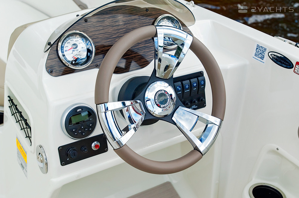 The Stingray 182SC (ОВ) with a hull length of 5.8 meters has a dry weight of 910 kilograms. The maximum draft of the boat is 0.71 meters. Outboard engine up to 115 hp is provided as standard. The fuel reserve is 79 liters.