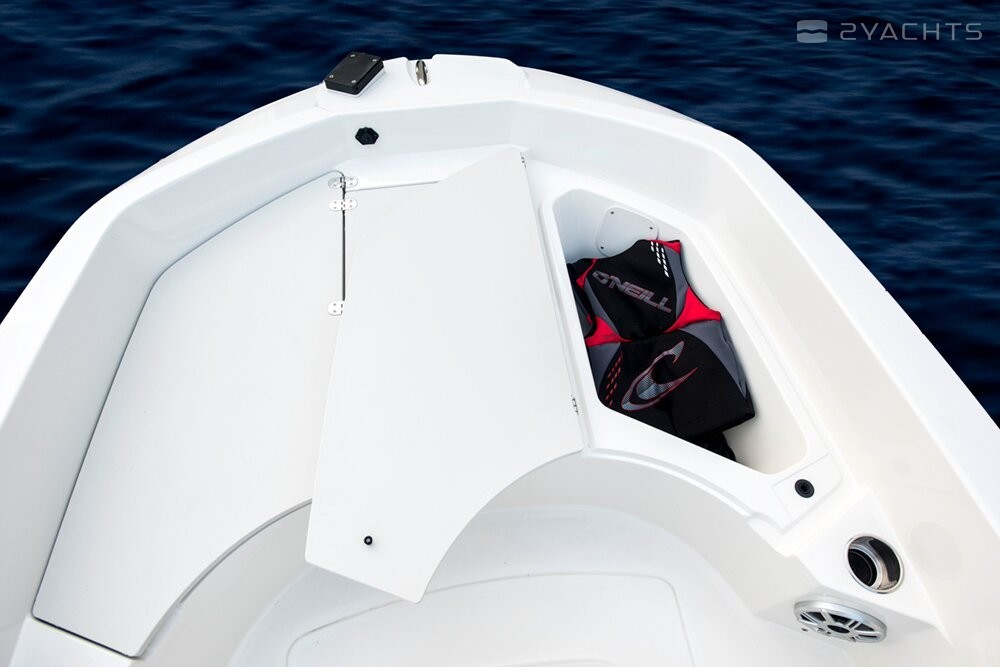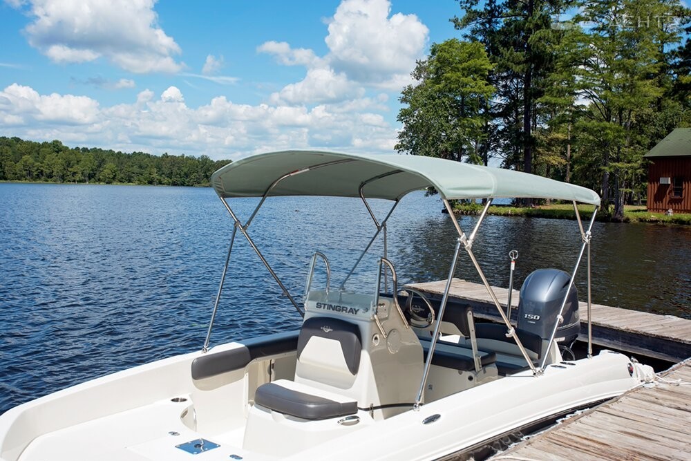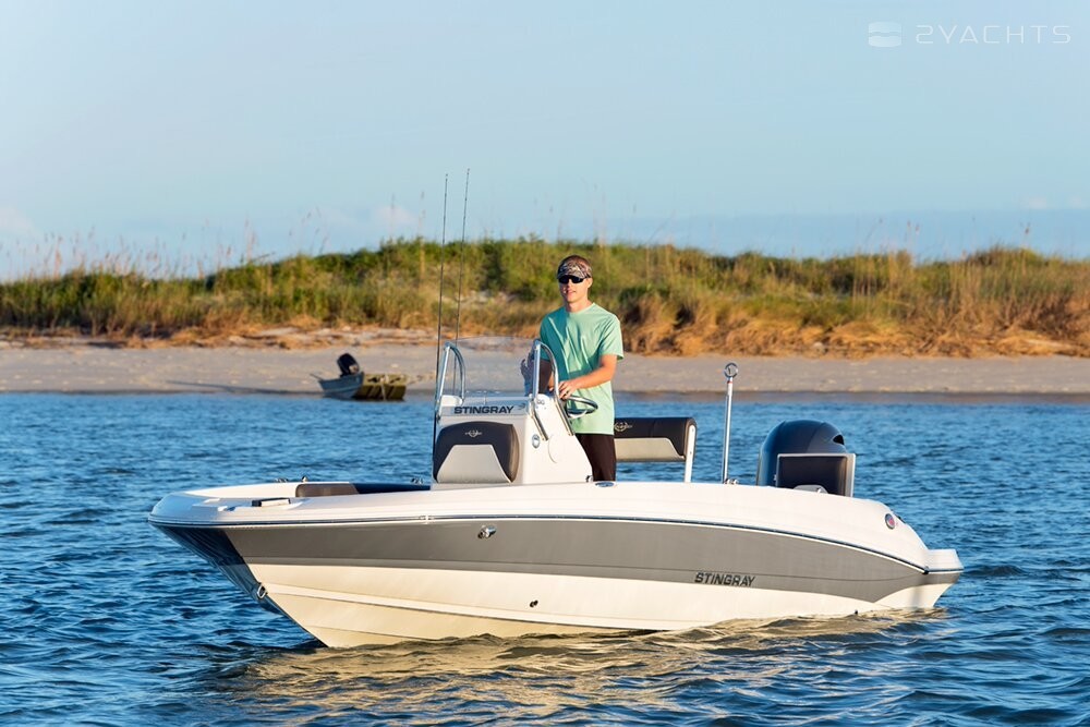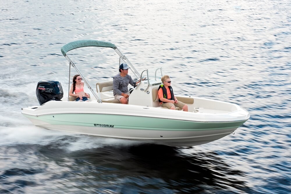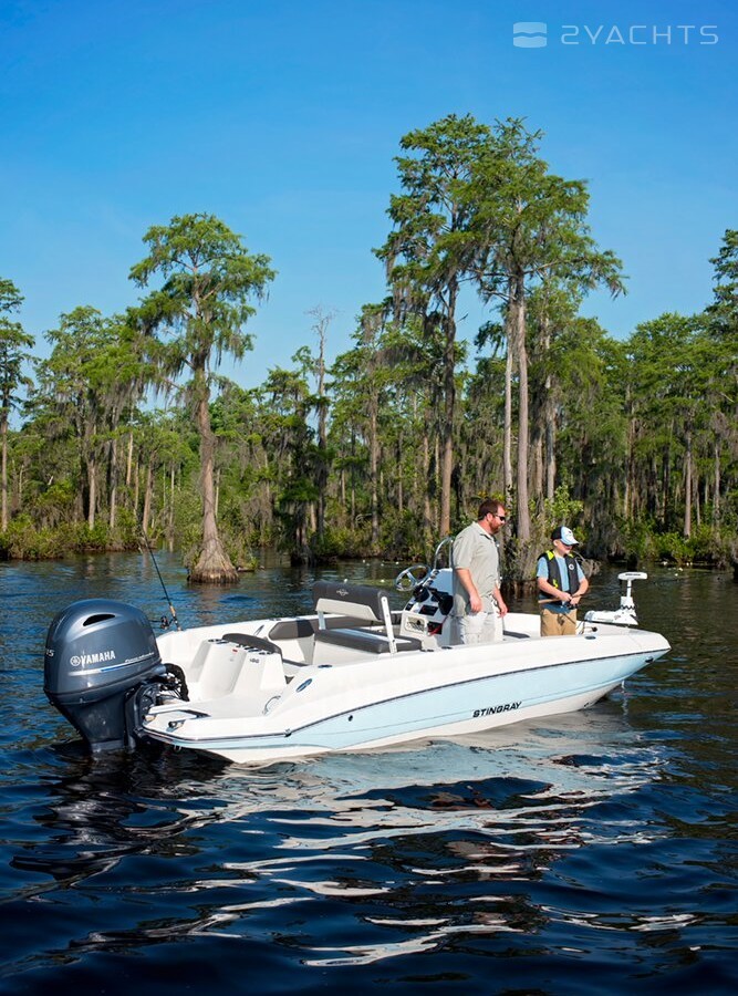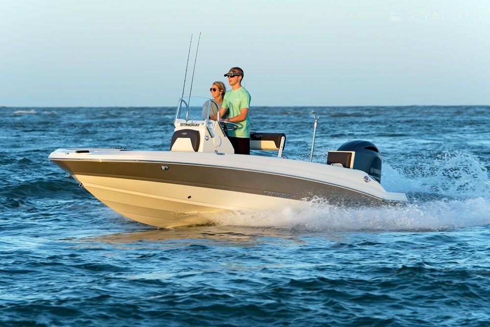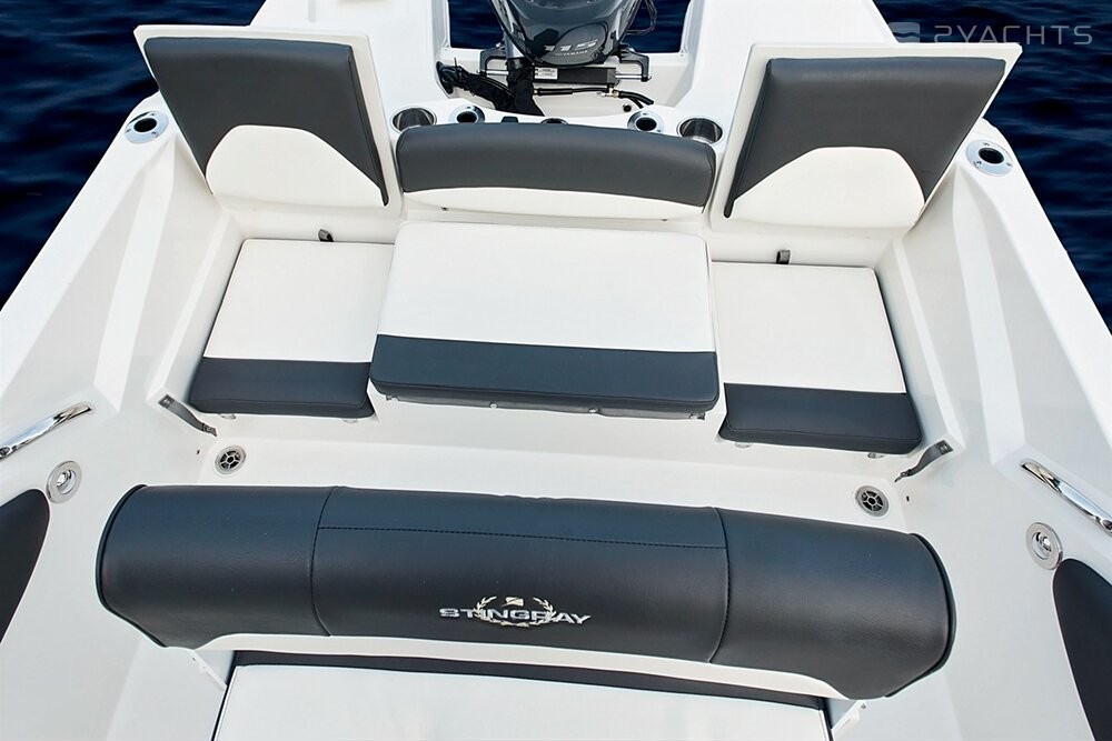 The classic bowrider Stingray 186 CC was first introduced in 2013 and is part of the Deck Boats line. The minimalistic exterior of the fiberglass planing hull has a Z-plane for quick exit from the water, which allows for faster top speed.