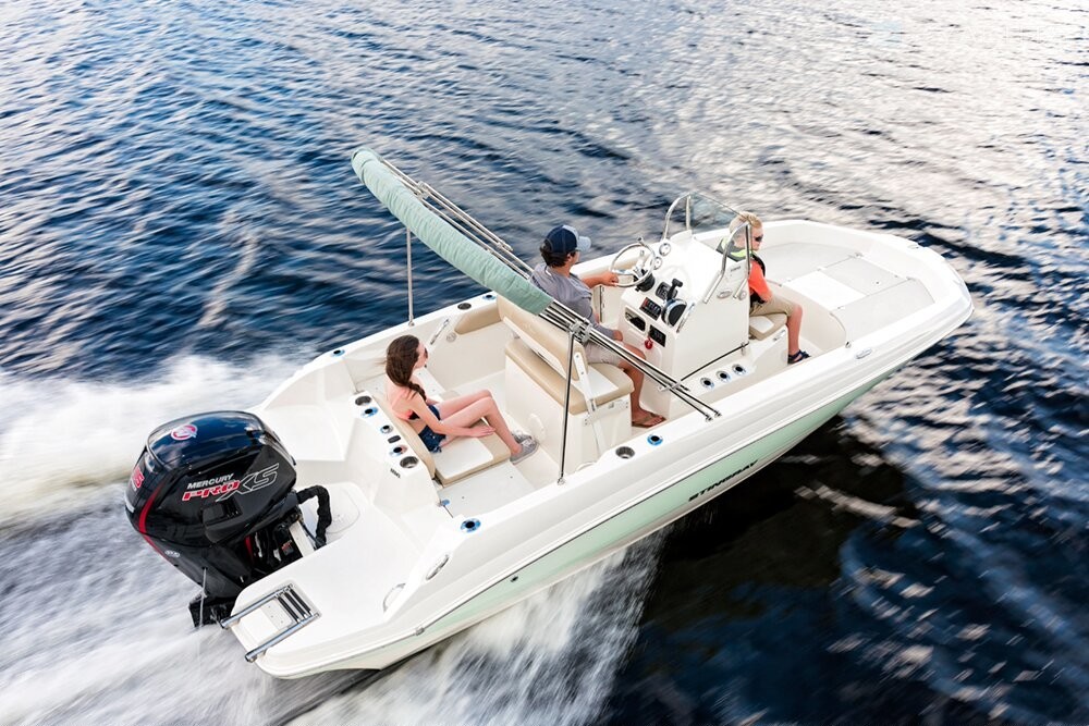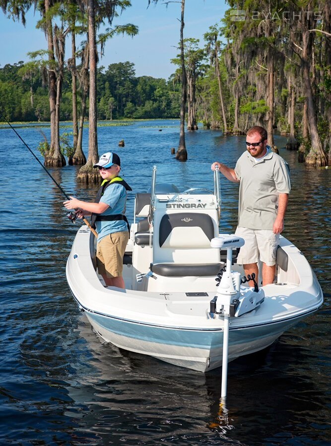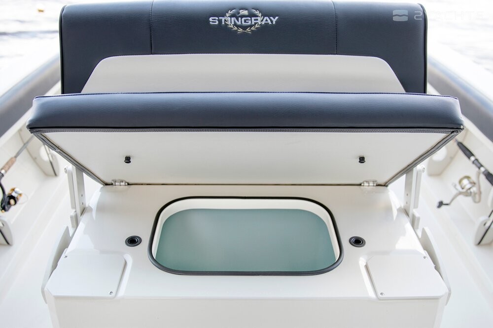 Bowrider Stingray 186 СC has a hull length of 5.8 meters, width - 2.29 m.Dry weight - 1,043 kg. The maximum draft is 0.71 m. The boat is equipped with a detachable petrol engine with a capacity of 150 hp. The fuel supply is 129 liters.