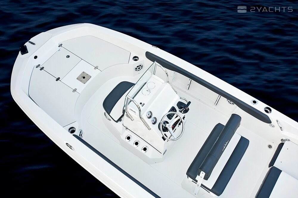 The cockpit has a place for the helmsman with a sofa for two people. There is lighting for the dashboard and switches, a steering wheel with a height adjustment function, a small windshield. A stereo system with Bluetooth is provided as standard.