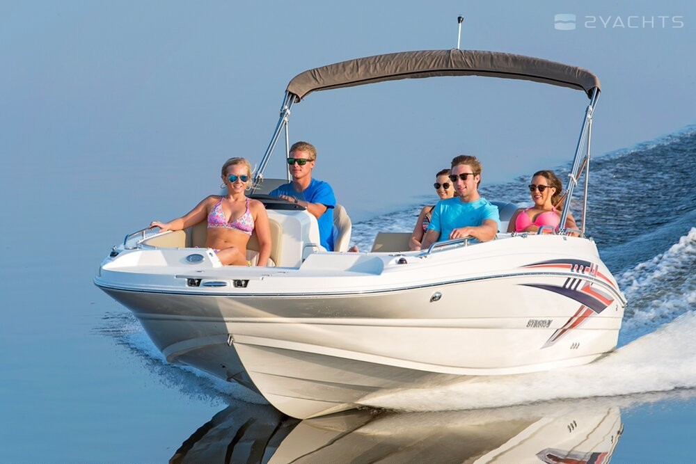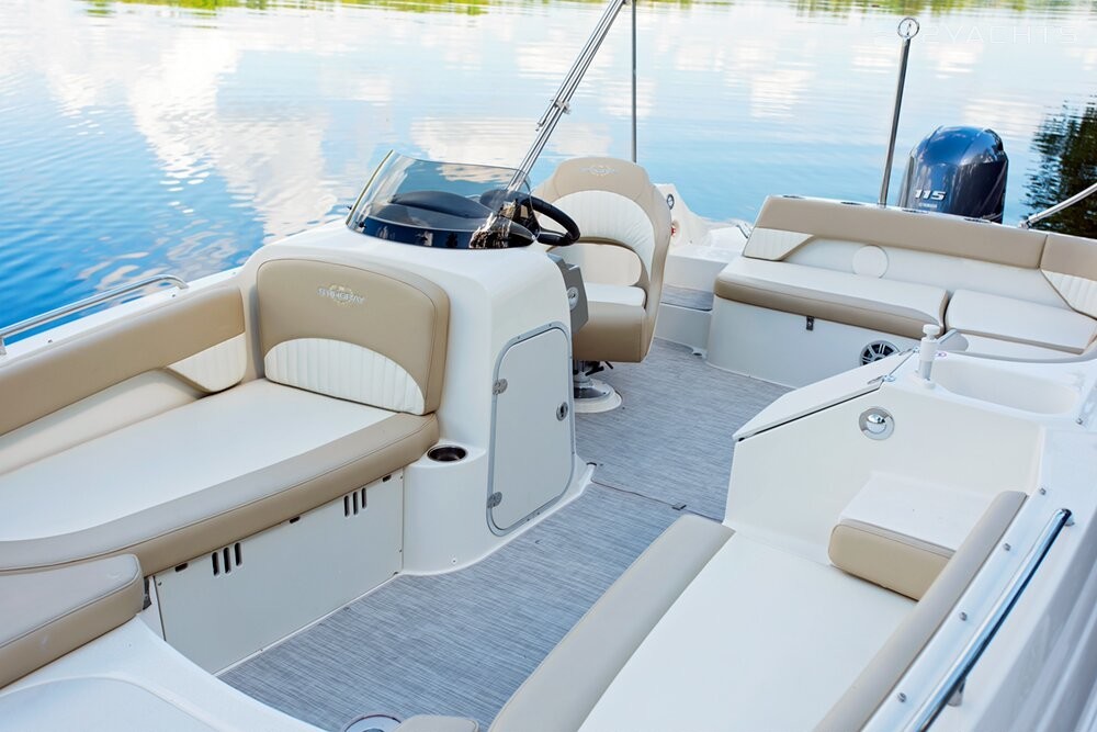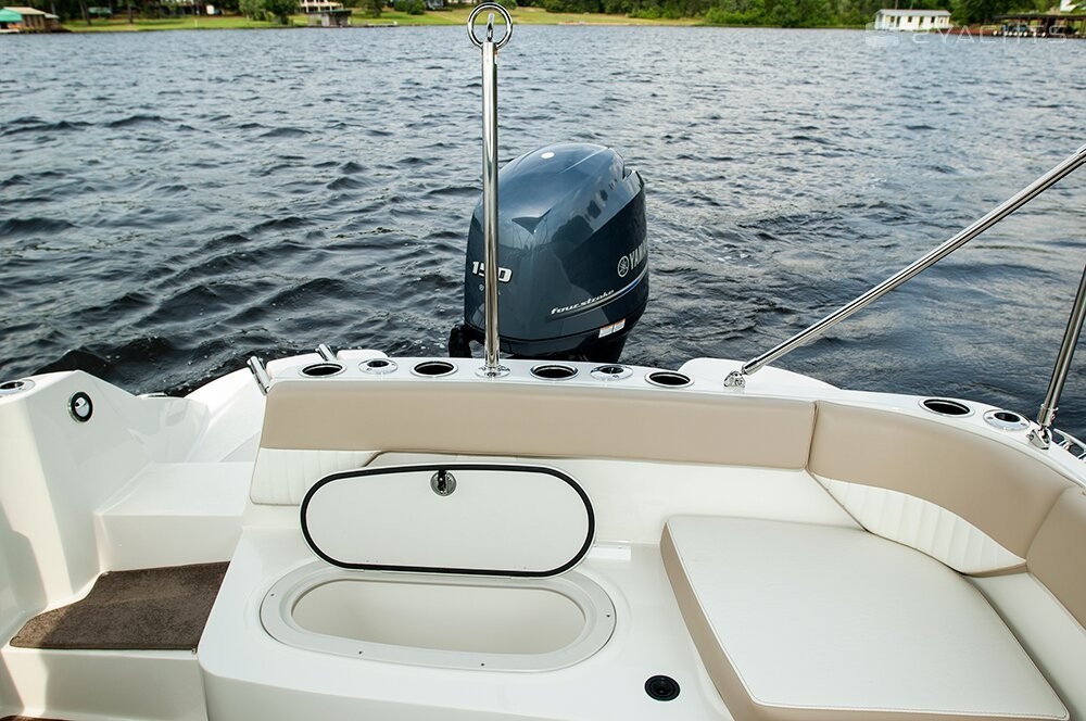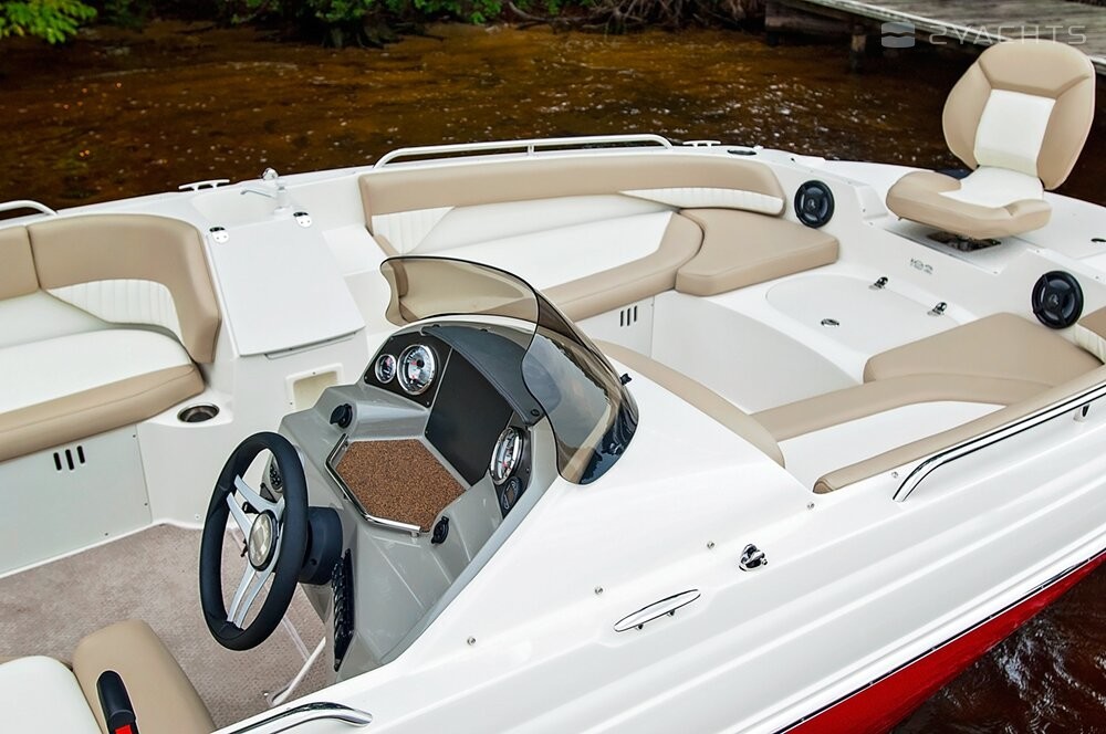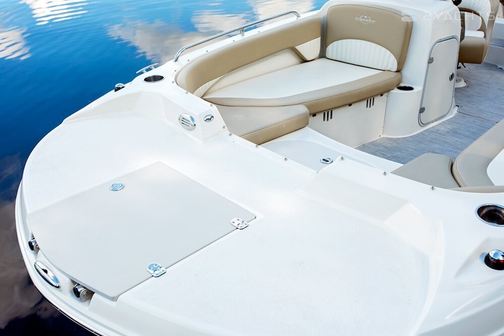 The Stingray 192SC (OV) walking bowrider is part of the Deck Boats line and was first presented in 2014, the GRP planing hull has a mainstream design. At the request of the customer, it is possible to supplement the exterior with graphics of various colors: red, blue, green or orange, as well as decorate with a stripe in a contrasting shade.
