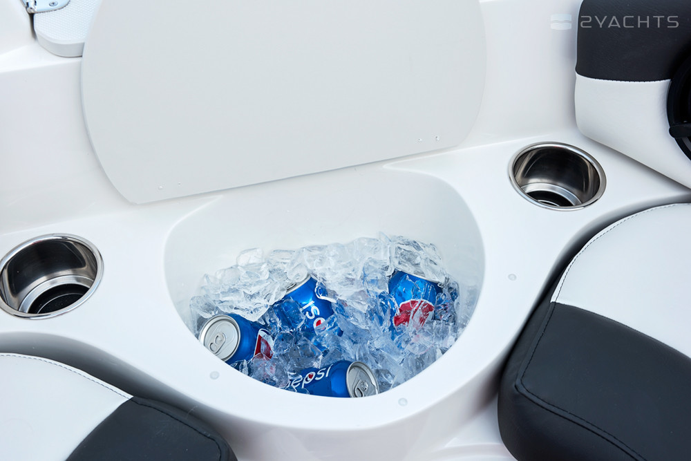 At the bow of the bowrider is the classic forward deck with a corner sofa. Standard equipment - drinks cooler, side-mounted stainless steel cup holders, storage compartment. A filling cushion is available as an option. The transition to the central part of the boat is carried out through a center-opening windshield and a special step.