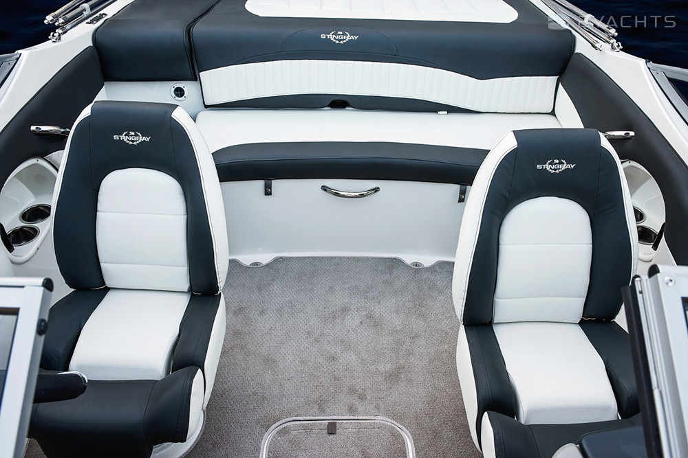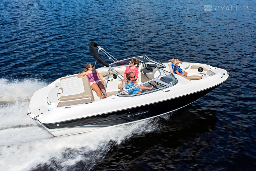 The sports bowrider Stingray 198LX was first demonstrated in 2013 and belongs to the Sport Decks line. The fiberglass planing hull is designed in a mainstream style. The boat has a Z-shaped hull for quick exit from the water and acceleration.