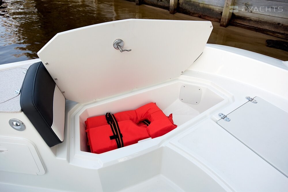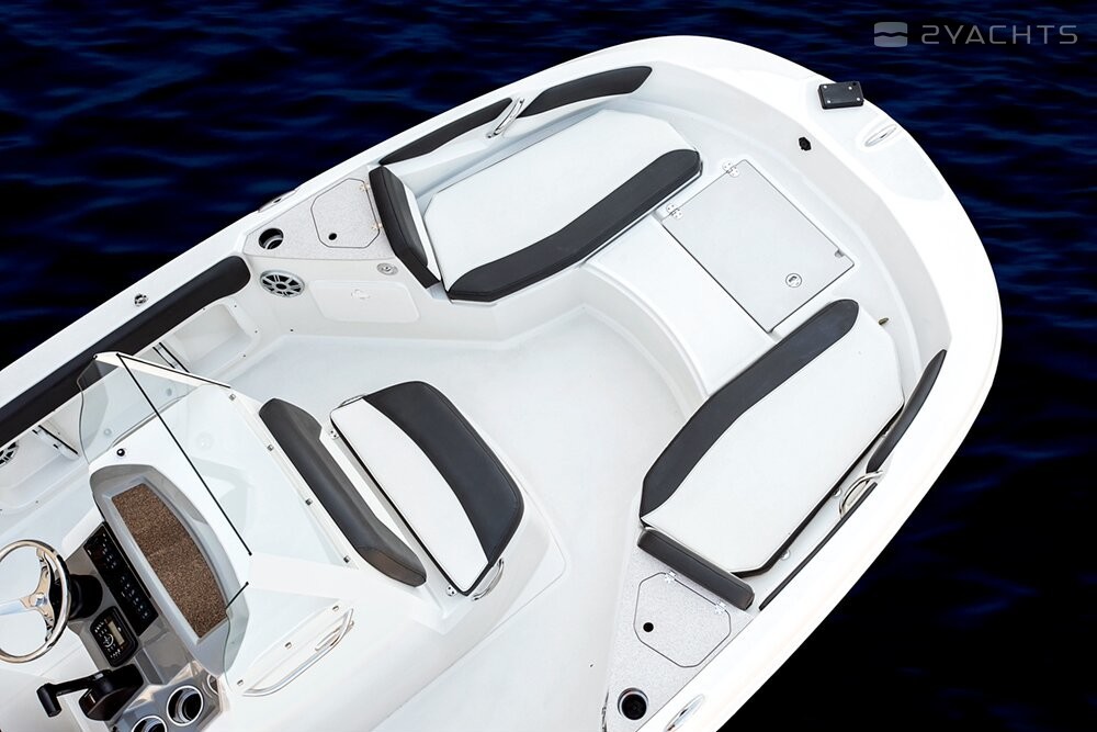 The Stingray 206 CC Deck Boat has a 174 liter fuel tank and a 49 liter fresh water storage tank.