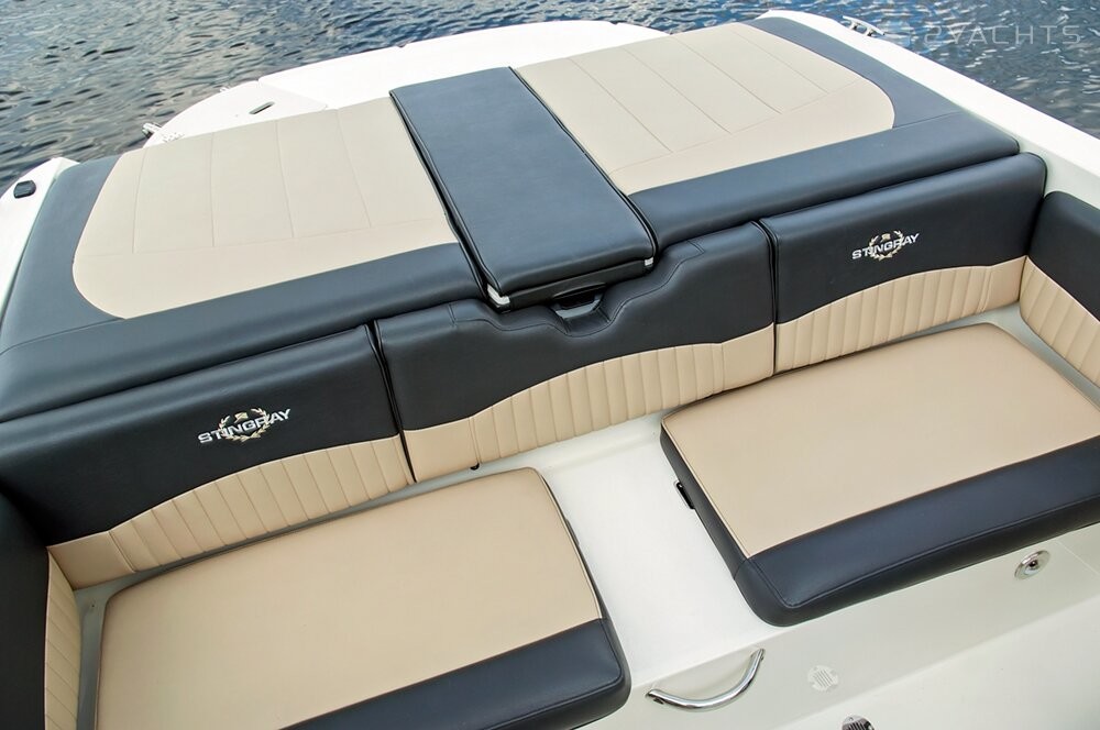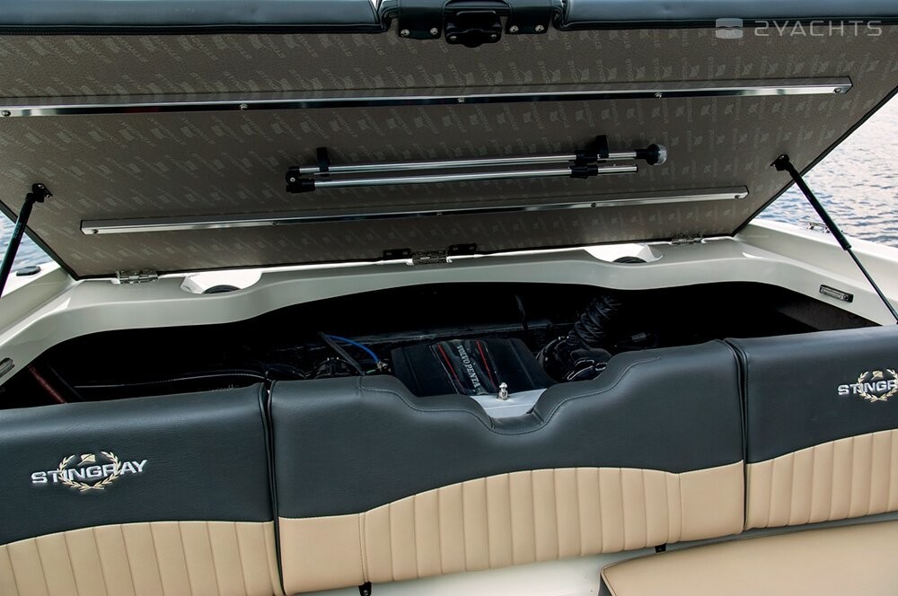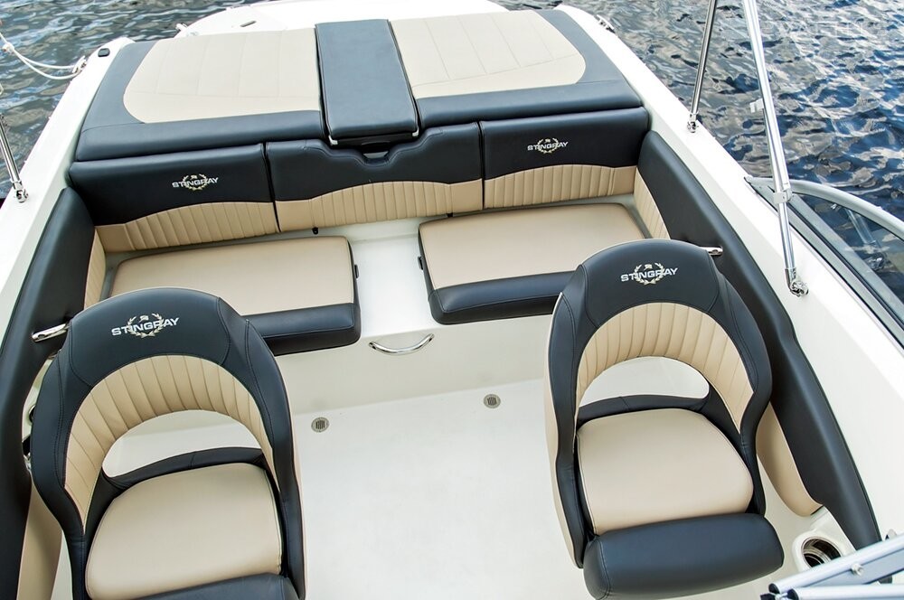 The Stingray 208 CR with a body length of 6.3 meters and a dry weight of 1330 kg has a maximum draft of 0.46 meters. Certification of the boat - CE (C), which means the ability to sail only in the coastal zone. The shipyard offers one of four engine options: MerCruiser 4.3 TKS 190 hp, Volvo Penta V6-200, MerCruiser 4.3 MPI 200 hp, Volvo Penta V6-225-C 225 hp The maximum speed is 57.7 knots, the fuel reserve is 129 liters.