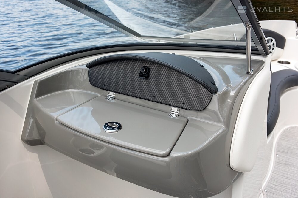 The Stingray 208LR is a maneuverable vessel 6.3 meters long and 2.5 wide. Draft is 0.46 m, maximum acceleration - more than 55 knots. The manufacturer offers a choice of 4 engine options: Mercruiser 4.3 MPI and MerCruiser 4.3 TKS for 190 hp, Volvo Penta V6-200 for 200 hp and Volvo Penta V6-225-C.