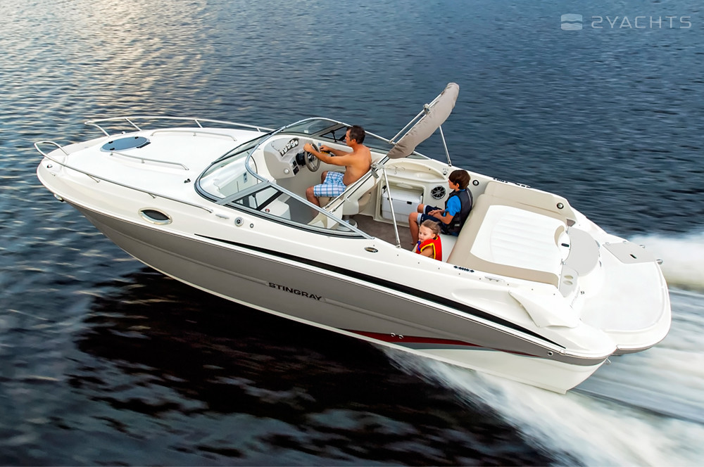 The Stingray 235CR cabin cruise boat was presented in the 2013 model year and is part of the Cuddies / Cruiser line. The body of the planing type of fiberglass has several colors: black, blue, crimson, latte or red. The design of the vessel is made in the style of mainstream. The model was discontinued by the shipyard in 2020.