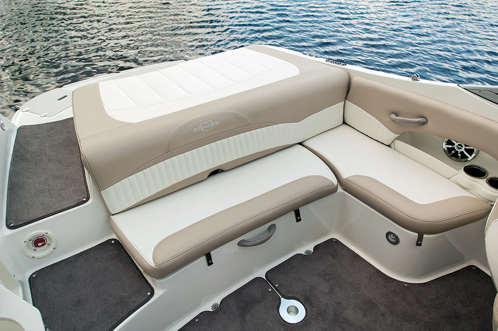 The Stingray 235CR has a hull length of 7.30 meters and a maximum draft of 0.48 meters. Dry weight - 1,890 kg. 220 hp Mercruiser 4.3 MPI A1 engine allows you to reach speeds of up to 59 knots. Fuel capacity - 212 liters.