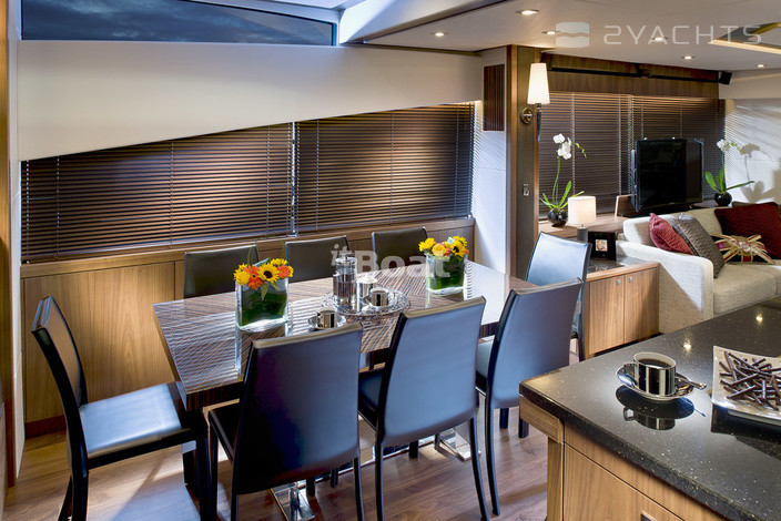 The Manhattan 73 yacht is the flagship of the flybridge range of "Manhattan," a British shipyard Sunseeker. It is distinguished and inventive layout, so that it is recognized as one of the best in this size. In addition to the master cabin taking up the whole width of the hull on the lower deck there are two spacious VIP cabins, not much inferior to the master's area, and guest room with two beds. Motor yacht Manhattan 73 Sunseeker got high ceilings in living spaces, low partitions and a large glass area on the upper deck. All this makes life on the boat comfortable for chatting and rest for several days. The boat is equipped with powerful engines and shows a high speed of 34 knots. The ability to control with a joystick will greatly simplify docking and maneuvering in narrow marinas.