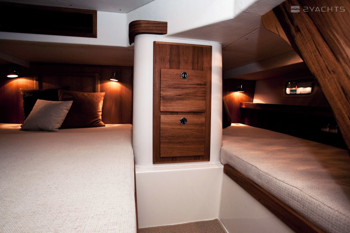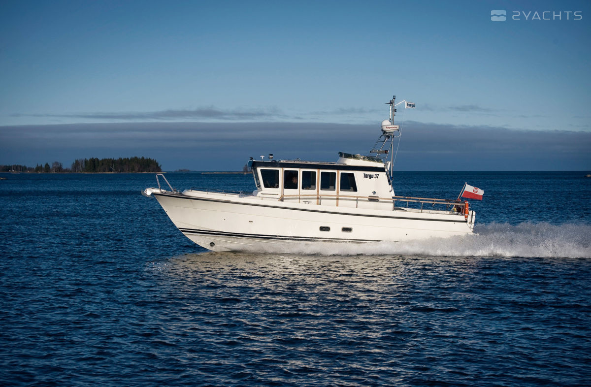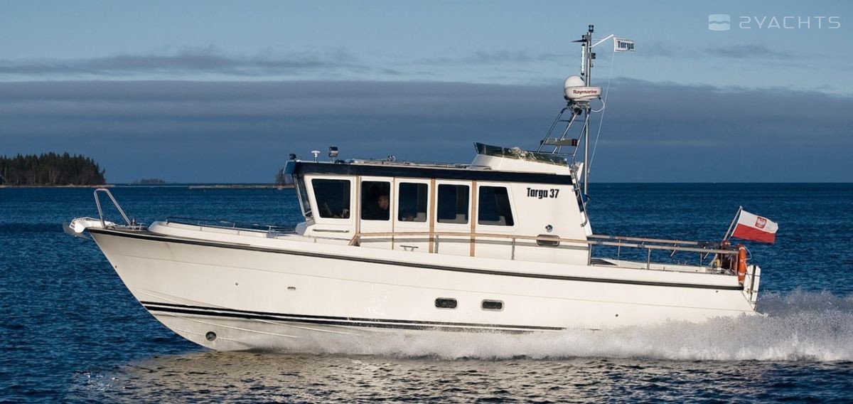 From year to year, the shipyard improves this popular flybridge model by optimizing the layout of the cabins, and the last modification abreviaturas CFC (Comfort Fore Cabin) dwelling become more cosy. Of course, you can criticize, for example, not too big galley, but Targa 37 "sharpened" is not for parties at the dock, and to deal with the elements, where this is the flybridge cruiser has no equal. Practicality on Board built in the third degree, whether side doors, safe deck or extremely functional control. With the most powerful of the available engines boat with transom speakers accelerates smartly to 38 knots and cruising exceptionally economical on fuel. Balanced keeled fiberglass hull, like the other models Botnia Marine, has excellent maneuverability, which allows not to reduce speed even on decent wave akin to true marine "jeep".