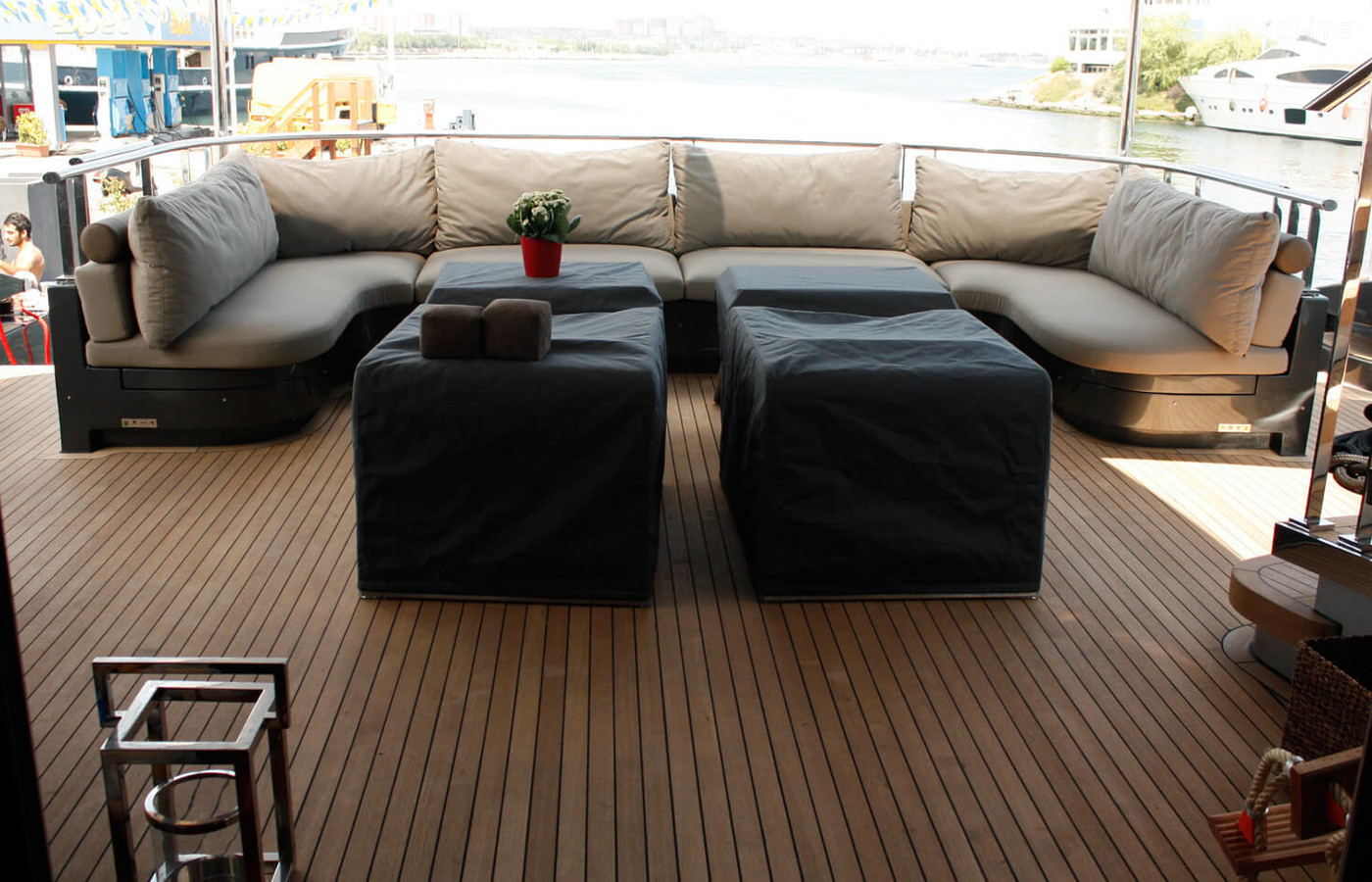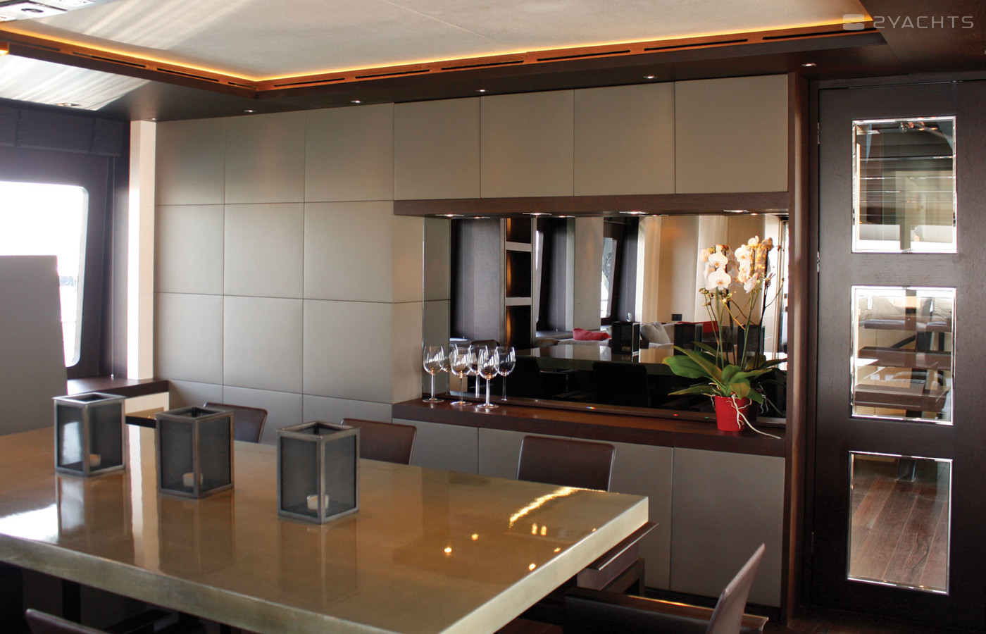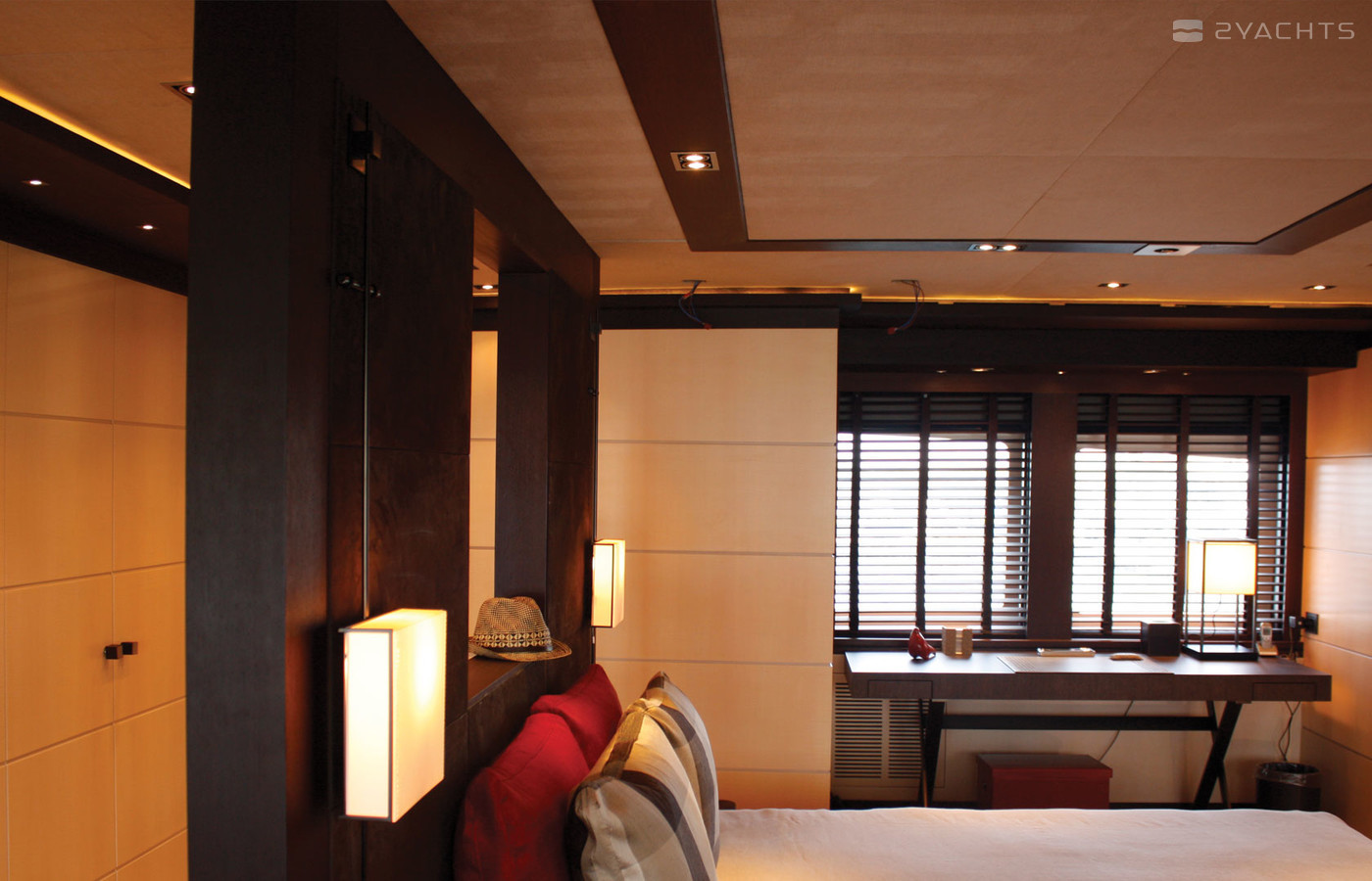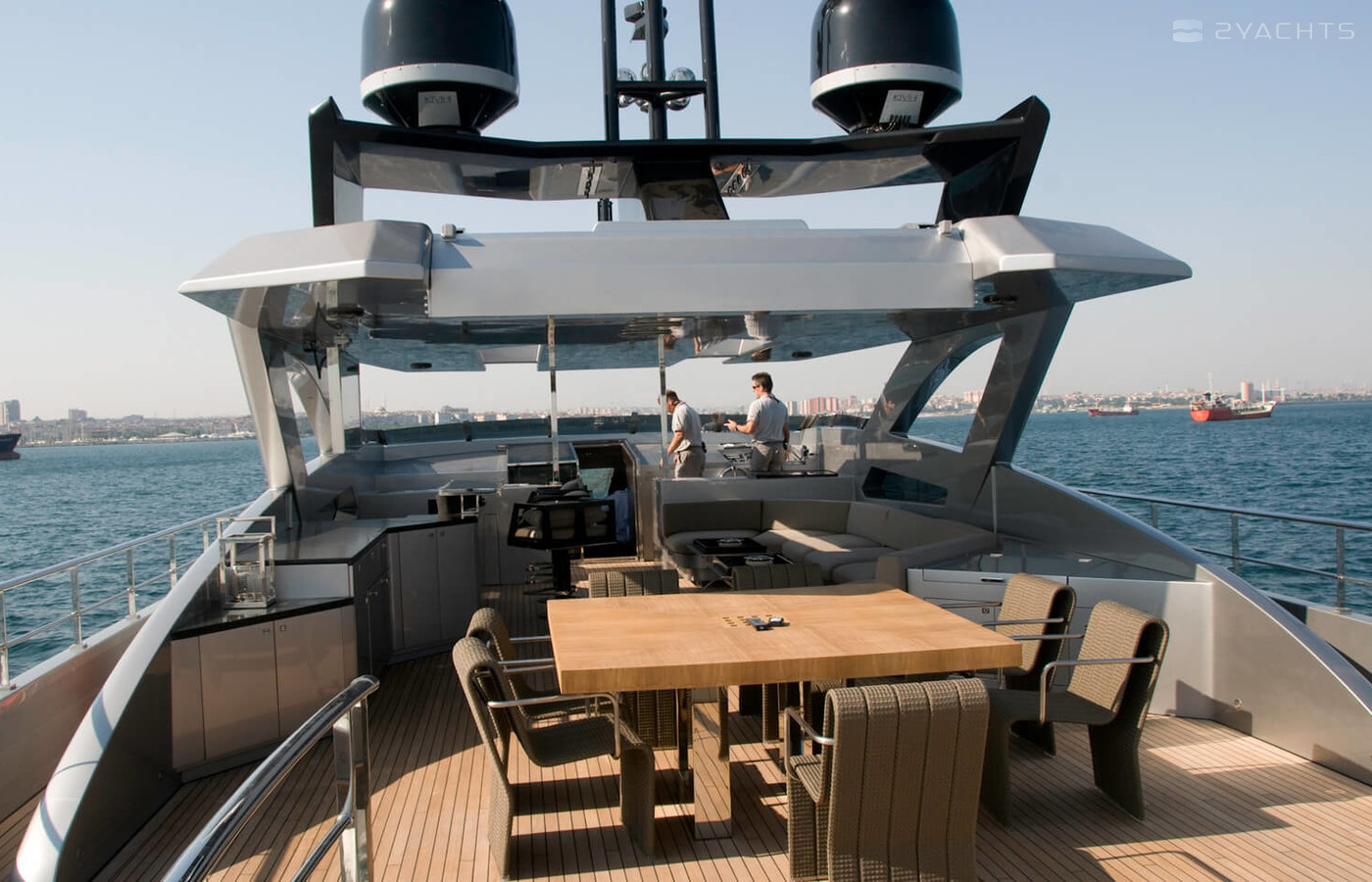 The 121.39ft /37m BILGIN 123 Fly-Bridge ‘Tee-Dje’ . The yacht’s exterior design and engineering were the work of Bilgin Yachts whereas the interior was designed by H2 Design of the U.K. Tee-Dje can host up to 8 guests in 4 cabins, including a master suite. She is also capable of accommodating up to 6 crew on board to ensure a comfortable yachting experience.