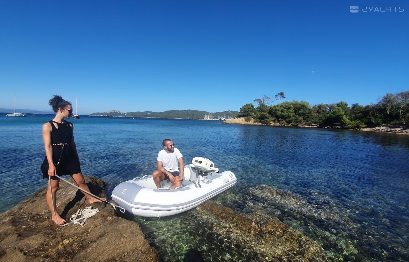 The Cadet 230 Aero pleasure boat has been manufactured by Zodiac since 2017. CE (C) certification only allows coastal waters. The case of the model has an inflatable bottom and cylinders, its length is 2.3 meters and its width is 1.44 meters. The ship has seats for three passengers, and its carrying capacity is 270 kilograms.