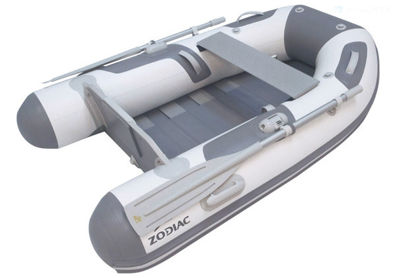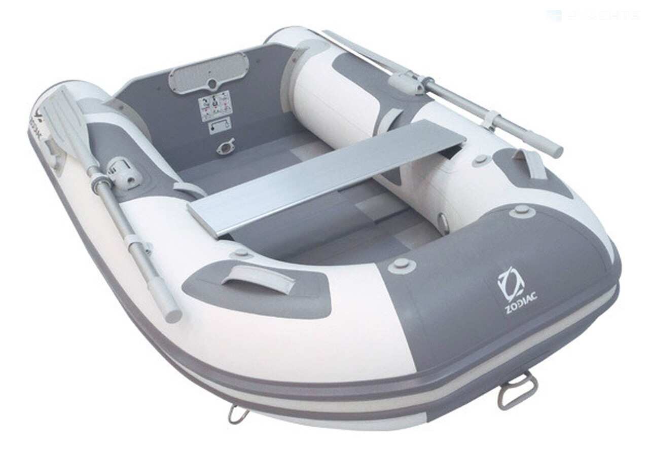 Zodiac shipyard has been producing the Cadet 230 Roll Up pleasure boat since 2016. The model is equipped with seats for three passengers, and its carrying capacity is 270 kilograms. The length of its hull with an inflatable bottom and balloons is 2.3 meters, and its width is 1.34 meters. International CE (C) certification only allows coastal waters.
