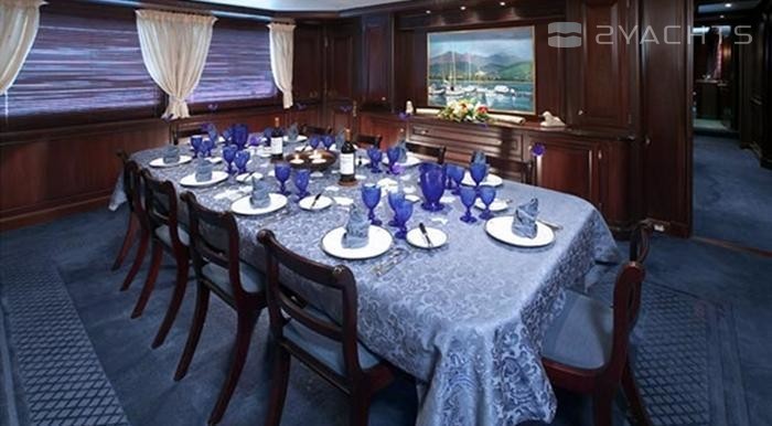 Крисс находится в 45 м / 147'8" роскошных моторных яхт. Она была построена Брокер Андрей Расмуссен в 1974 году. С пучком 7.47 м и осадкой 3,2 м, она имеет стальной корпус и стальную надстройку. Это добавляет к общим водоизмещением 330 тонн. Она питается от двигателей Caterpillar в 1050 л. с. каждый, давая ей максимальную скорость 14 узлов и крейсерская скорость 12,5 узлов. Моторная яхта может разместить 10 гостей в 5 каютах. Яхта была разработана исполнителя Felix Buytendijk.