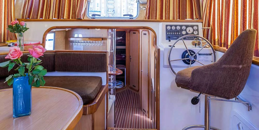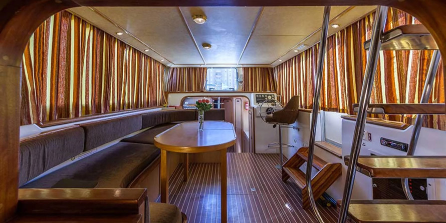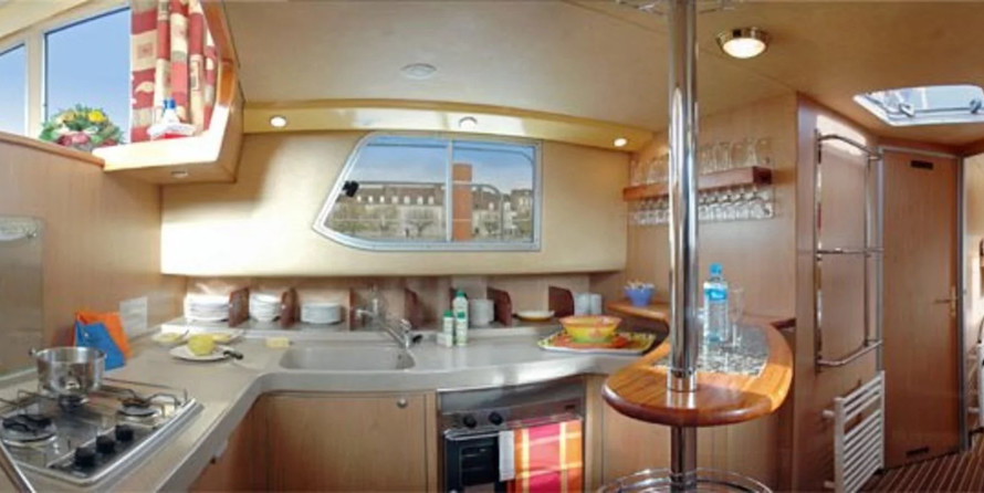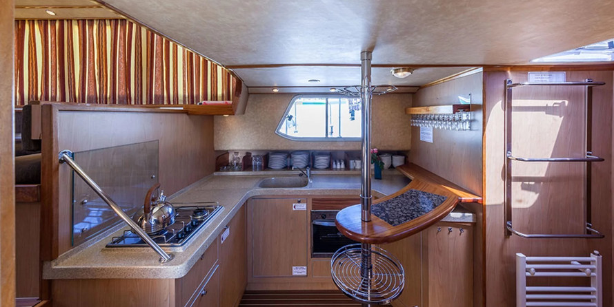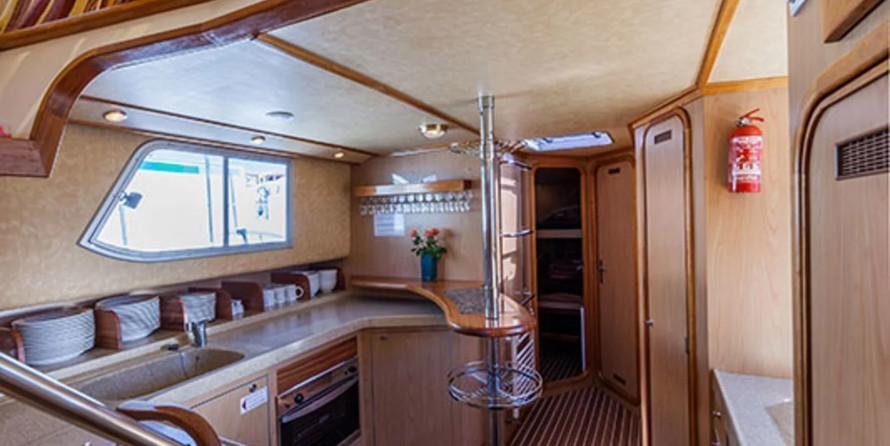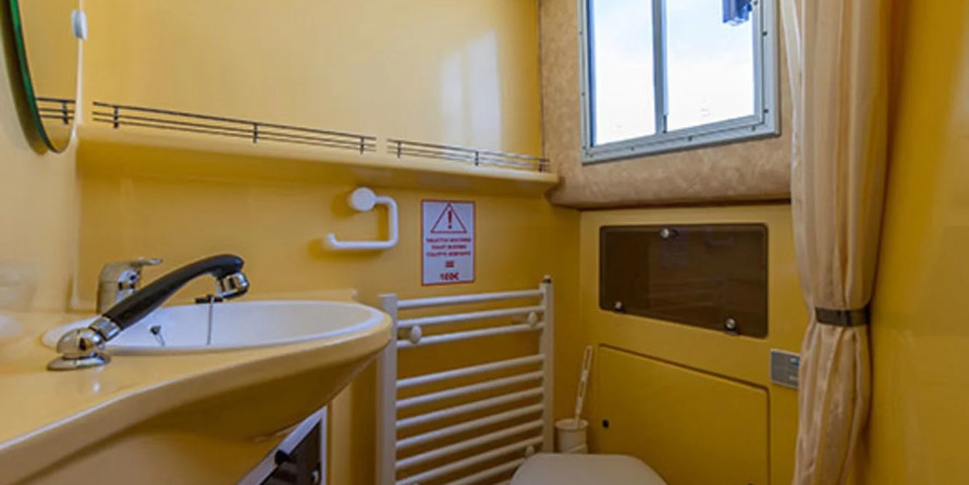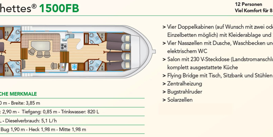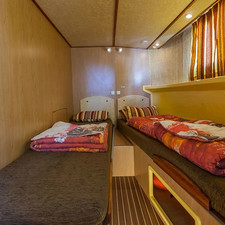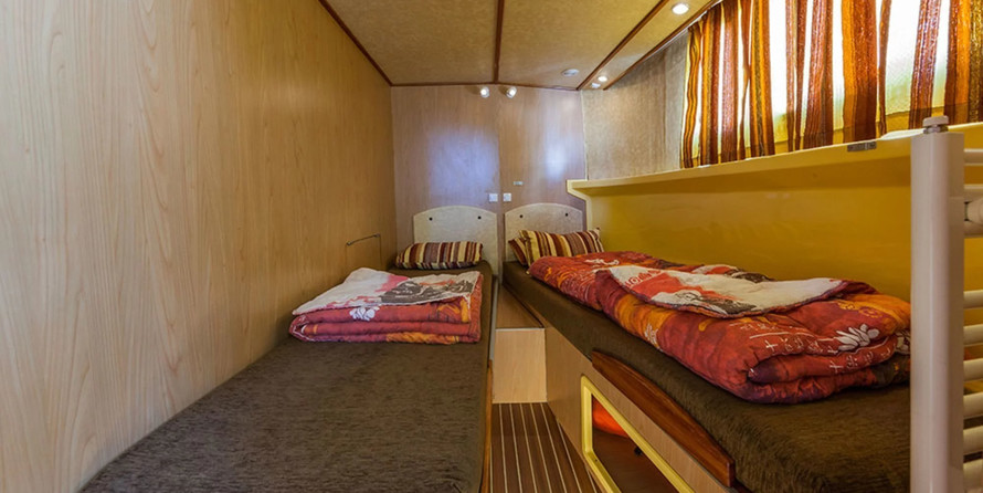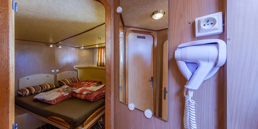 • Four double cabins (on request with two or three single beds possible) with clothes rack and storage