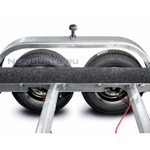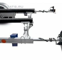 Технические характеристики Грузоподъемность 1900 кг Снаряжённая масса 600 кг Длина судна 6200 мм Опоры для судна ложементы Подвеска резино-жгутовая Нагрузка на одну ось 1300 кг Дорожный просвет 251 мм Размер колёс R14С Тип ТСУ шар Ø50 мм Фонари накаливания Тормоз наката Штекер 7-pin Петли крепления груза 4 шт Защитное покрытие цинк Комплектация Усиленные оцинкованные рама и дышло прицепа выполнены из замкнутого профиля, имеют большой запас прочности и позволяют уберечь жгут электропроводки от внешних повреждений по все длине прицепа. Рама оборудована подножками (4 шт.), петлями крепления груза (4 шт.), отсеками для противооткатных упоров и вспомогательным килевым роликом установленным на задней поперечине прицепа, который обеспечивает свободное скольжение киля при подъёме судна. Передвижной носовой упор оборудован лебёдкой, имеет регулируемую высоту, угол наклона. Он может быть отрегулирован и установлен в наиболее удобном положении для модели перевозимого судна. Лебёдка облегчает погрузку судна на прицеп и страхует его при спуске на воду. Передвижные ложементы могут быть установлены в любой точке поперечен рамы, имеют регулируемый угол наклона и регулируемую высоту. Это позволяет установить их в наиболее удобное положение под угол килеватости судна, избежать давления на продольные реданы, а также расположить судно максимально низко, тем самым обеспечить устойчивость прицепа при движении и осуществлять спуск судна на воду меньшей глубине. При перевозках и хранении судна на прицепе ложементы позволяют равномерно распределить вес техники и уменьшить давление на корпус судна. Передвижной колесный ход позволяет отрегулировать расположение оси и установить её под центром тяжести перевозимого судна. Правильное распределение нагрузки на прицепе обеспечивает безопасность перевозок, позволяет избежать превышения допустимой нагрузки на шар фаркопа, а также запрокидывание прицепа назад при перевозке судна с мотором. Каждая оцинкованная ось с резино-жгутовой подвеской рассчитана на нагрузку 1200 кг, тормозные барабаны оборудованы защитными колпаками, усиленные подшипники не требуют дополнительной смазки и регулировки на протяжении всего срока службы. Производство AL-KO Kober (Германия). Три автономных тормозных системы: рабочая, стояночная и аварийная. Рабочая тормозная система — для торможения при движении в составе автопоезда. Стояночная тормозная система — для фиксации прицепа во время стоянки. Аварийная тормозная система — для аварийного торможения при нарушении сцепки с тягачом. Оцинкованное опорное колесо с упорным подшипником рукоятки. Регулируется по высоте, обеспечивает горизонтальное положение прицепа и облегчает его передвижения без тягача. Статическая нагрузка — до 500 кг, динамическая нагрузка — до 300 кг. Съёмные выдвижные кронштейны с задними габаритными фонарями, исключают погружение светотехники воду и обеспечивают её сохранность. Для соблюдения требований ПДД, при перевозке судна выступающего за габариты прицепа, задние фонари могут быть выдвинуты на 1 метр. Жгут электропроводки убран в защитный гофрированный кожух. Штекер 7-pin. В базовую комплектацию входят: опорное колесо (500 кг), противооткатные упоры (2 шт.). Антикоррозийное покрытие горячим цинкованием существенно эффективнее цинкового напыления или кр