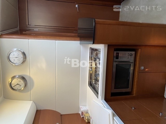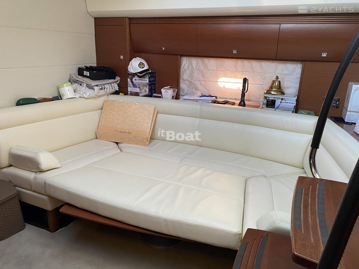 В качестве силовой установки выбраны дизельные Volvo Penta IPS500 по 370 л/с. Яхта стремительна и очень маневренна, рулевому придется по вкусу управление джойстиком, швартовка не сложнее, чем в видеоигре. Широкие боковые проходы закрыты высокими рейлингами, удобно и безопасно. А благодаря колонкам IPS с их высочайшим КПД расход на круизной скорости укладывается в очень разумные рамки. Пост управления ожиадемо радует эргономикой, все под рукой, а приборы отлично читаются.