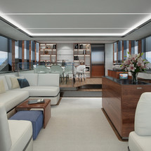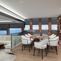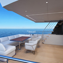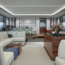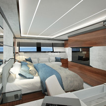 В стандартном варианте предлагается два дизельных двигателя по 300 л.с., что позволяет яхте развивать круизную скорость в 11 узлов на малых оборотах и значительно экономить топливо.