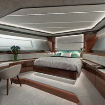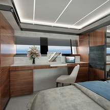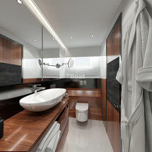 Помимо этого, отдельно в корме яхты, расположена каюта капитана и помощника, которая достойно обеспечивает все необходимые потребности людей, как в отдыхе, так и в работе. Данное расположение каюты позволяет персоналу яхты не беспокоить без необходимости и не прерывать отдых владельца, а также гостей яхты, при этом своевременно и добросовестно выполнять свои служебные обязанности.