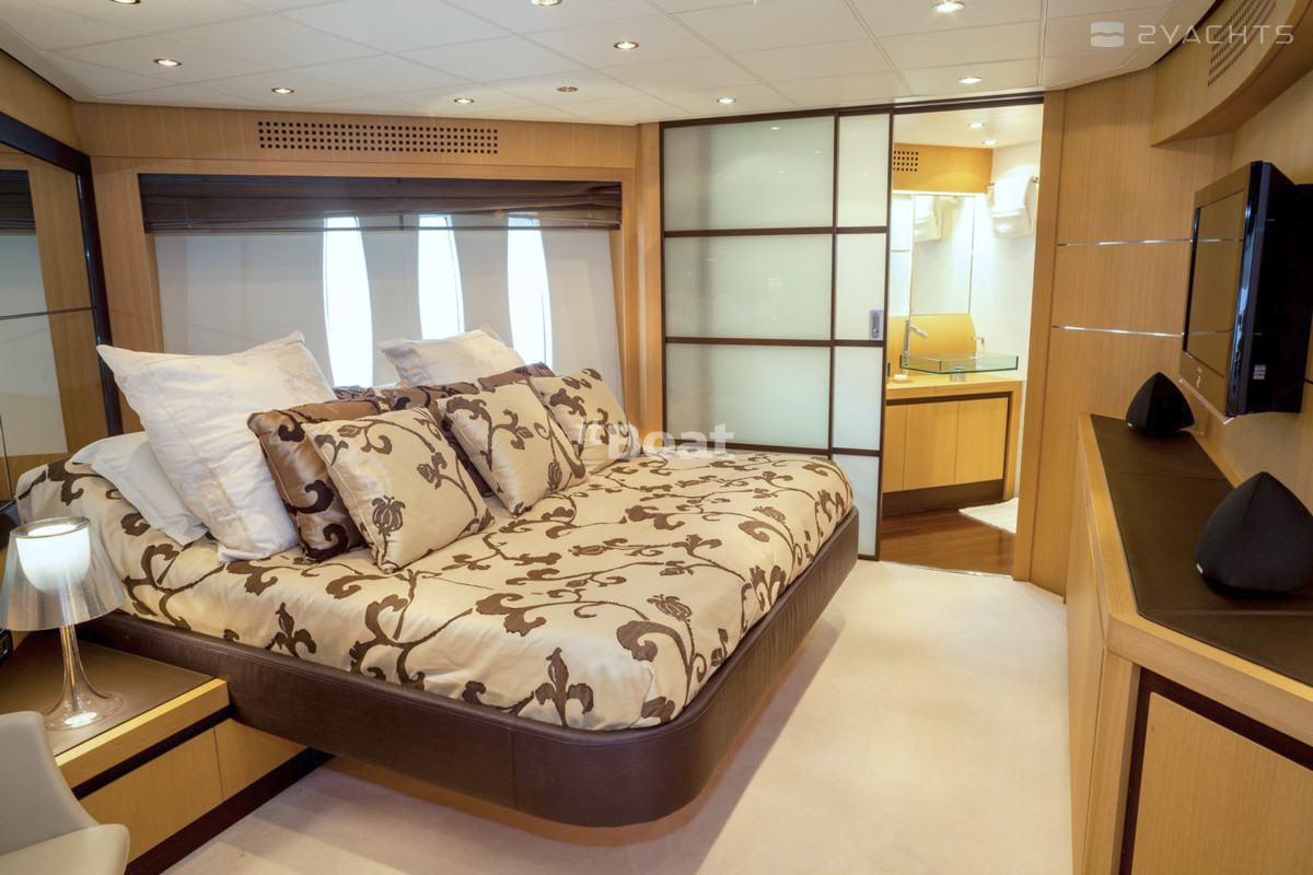 Эта роскошная моторная яхта, спущенная на воду в 2008 году знаменитой верфью Pershing, может похвастаться скоростью, изящными линиями и роскошным интерьером. Яхта была спроектирована для комфортного размещения до 8 гостей в 4 просторных каютах, плюс 3 членов экипажа в 2 каютах.