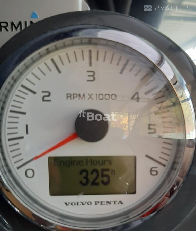 Моторное судно VELVETTE 25 EUPHRIA. 2015 г.в. Мощность двигателя 220 л.с. 325 м/ч. Длина 7,7 м., ширина 2,55 м., максимальная осадка 0,46 м., максимальное количество людей на борту 8 человек, масса судна 1000 кг., материал корпуса - стеклопластик.