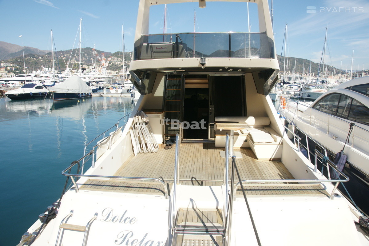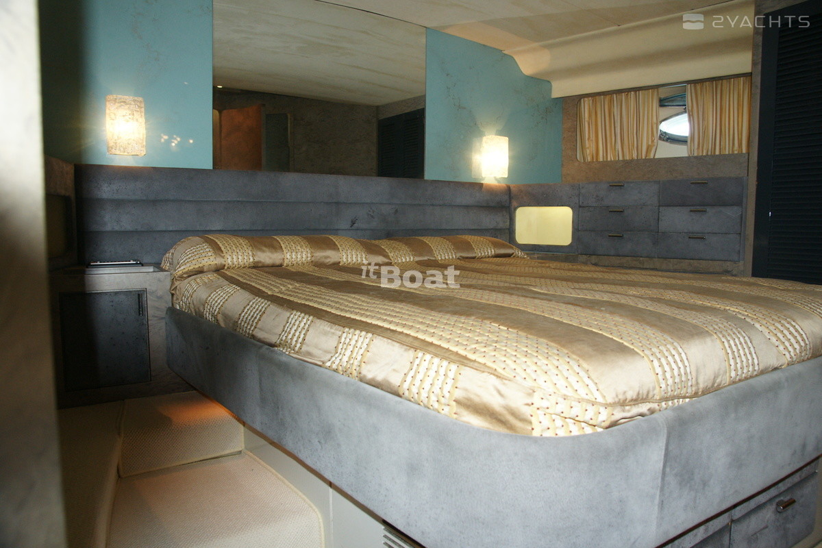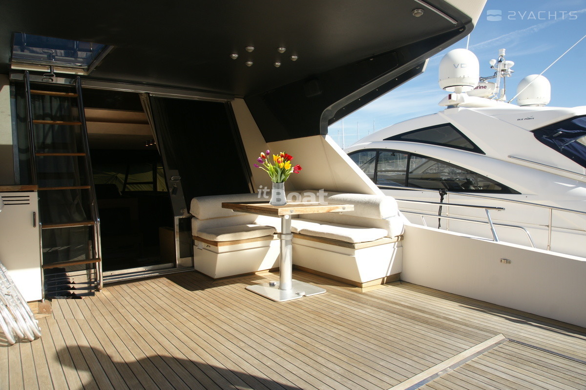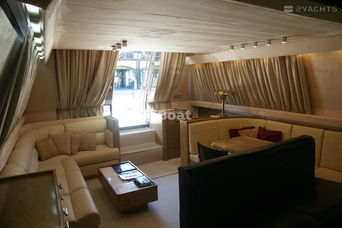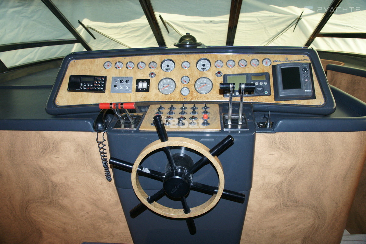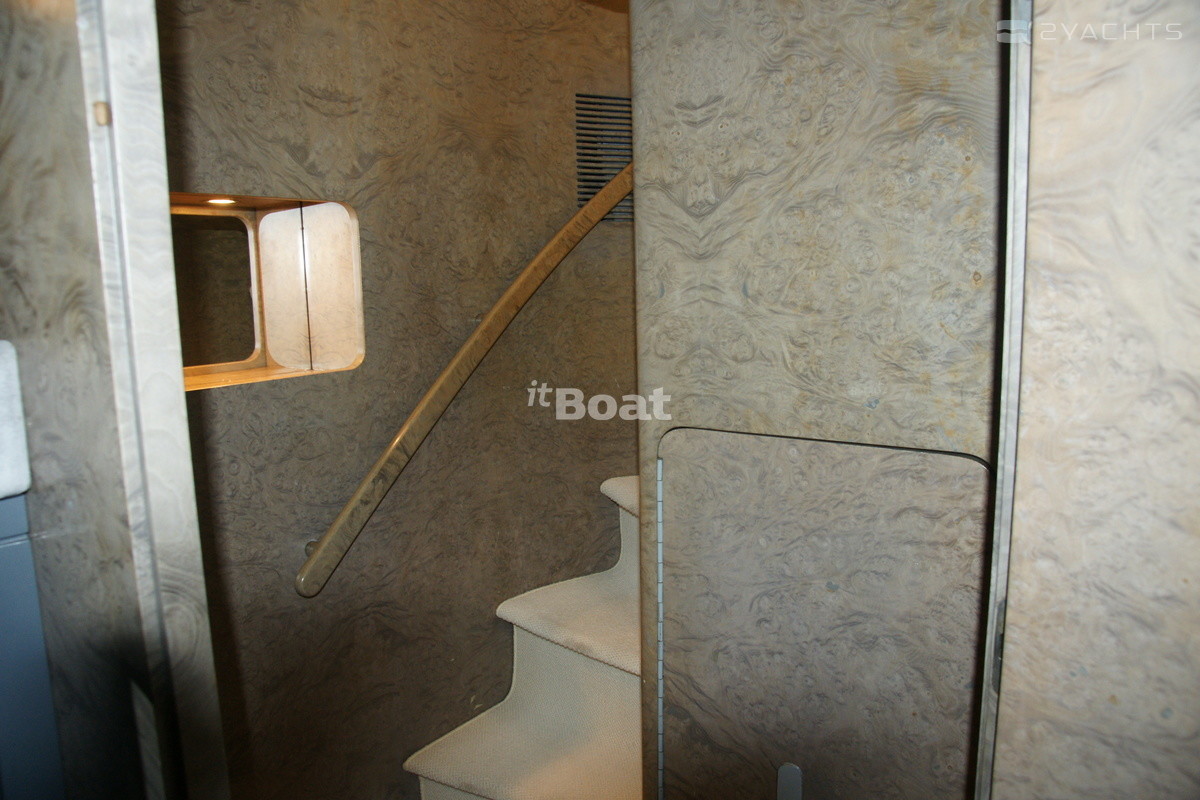 Лодка в очень хорошем состоянии, третий владелец, прямой контакт. В 2011 году яхта прошла общий осмотр с обновлением RINA. Гостиная - салон; Кухня на первом этаже с новой керамической плитой, духовкой и посудомоечной машиной, холодильник (всего 5 на яхте); 3 каюты с душевыми/туалетами, плюс кабина экипажа на носу лодки с собственным туалетом: - Каюта судовладельца на корме с ванной, - VIP-каюта с ванной, - Гостевая каюта с двухъярусными кроватями"L" с ванной, - Носовая каюта экипажа для 2-х человек с ванной комнатой Носовое подруливающее устройство - гидравлический трап с емкостью kg.360 для варусного / вытаскивания тендера - тендер в комплекте с автомобильным Flyer f.b. Honda 20 л.с. - Опреснитель Спутниковая антенна с 3мя телевизорами (плазма) - Стиральная машина - воздушный компрессор - полный набор чехлов и подушек для зоны отдыха на флай-бридже (Sundeck) Описание приборов: VHF - GPS / плоттера последнего поколения - Радар Furuno 75 мг - Автопилот - эхолот