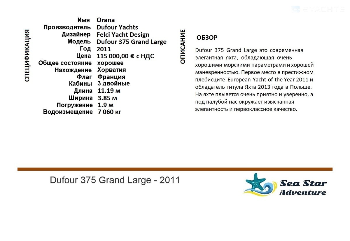 Добрый день, Меня интересует лодка Dufour 375 GL. Ваше объявление еще актуально? Спасибо за ответ.